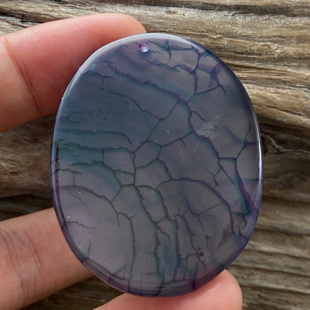 こちらのアゲートの模様は、竜の鱗の様に見えることから『ドラゴンベイン』や『ドラゴンヴェインズ』と呼ばれるクラック加工がされており、カラフルな色味は染色によるものです。