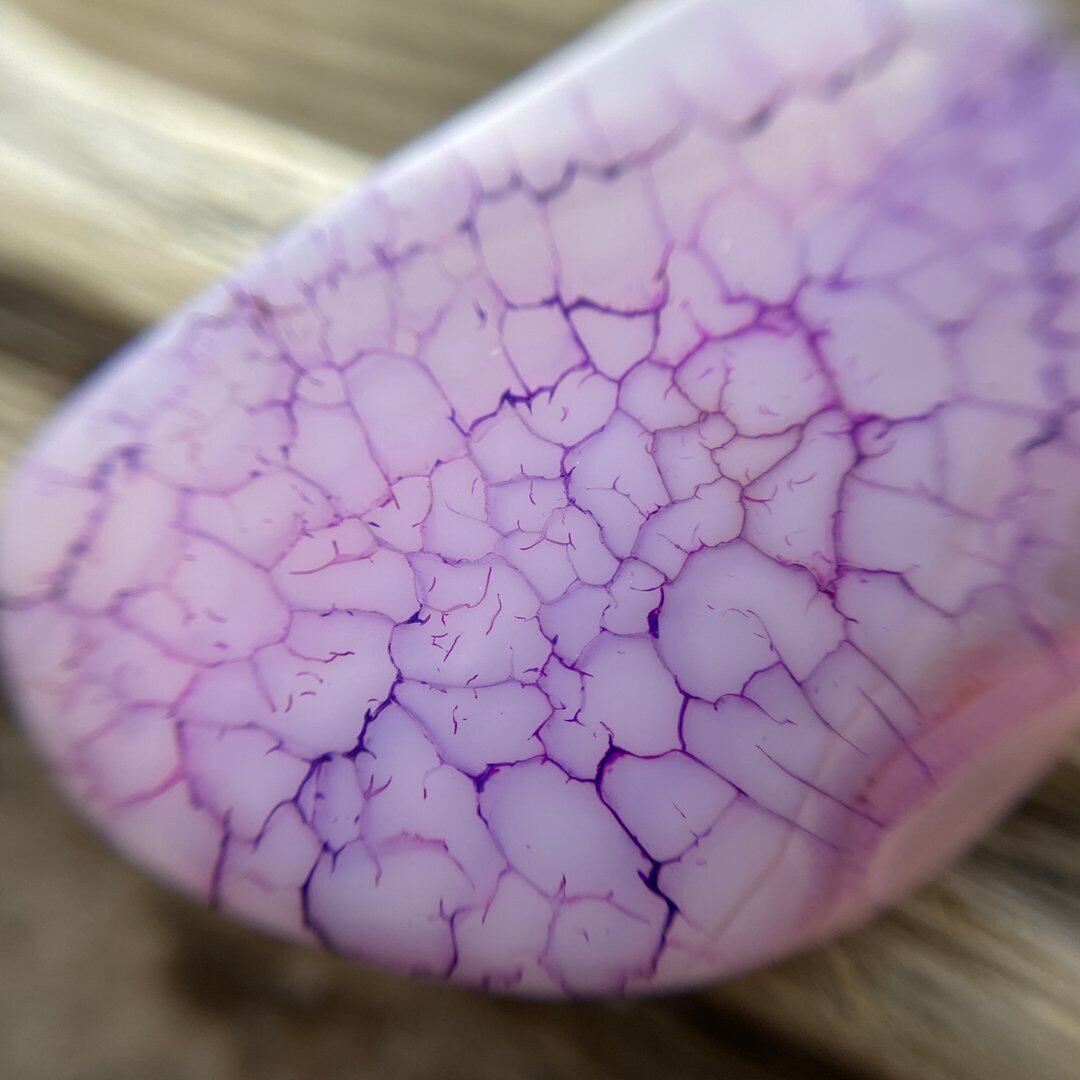 こちらのアゲートの模様は、竜の鱗の様に見えることから『ドラゴンベイン』や『ドラゴンヴェインズ』と呼ばれるクラック加工がされており、カラフルな色味は染色によるものです。