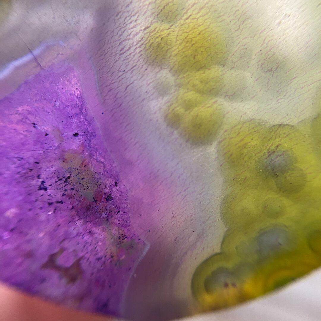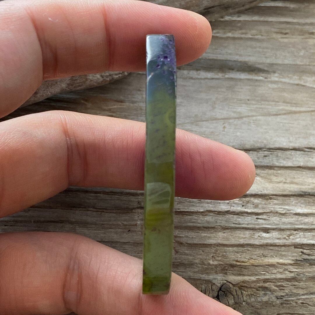 細かい結晶群(ドゥルージー)を含む原石をスライスして、両面が研磨されています。