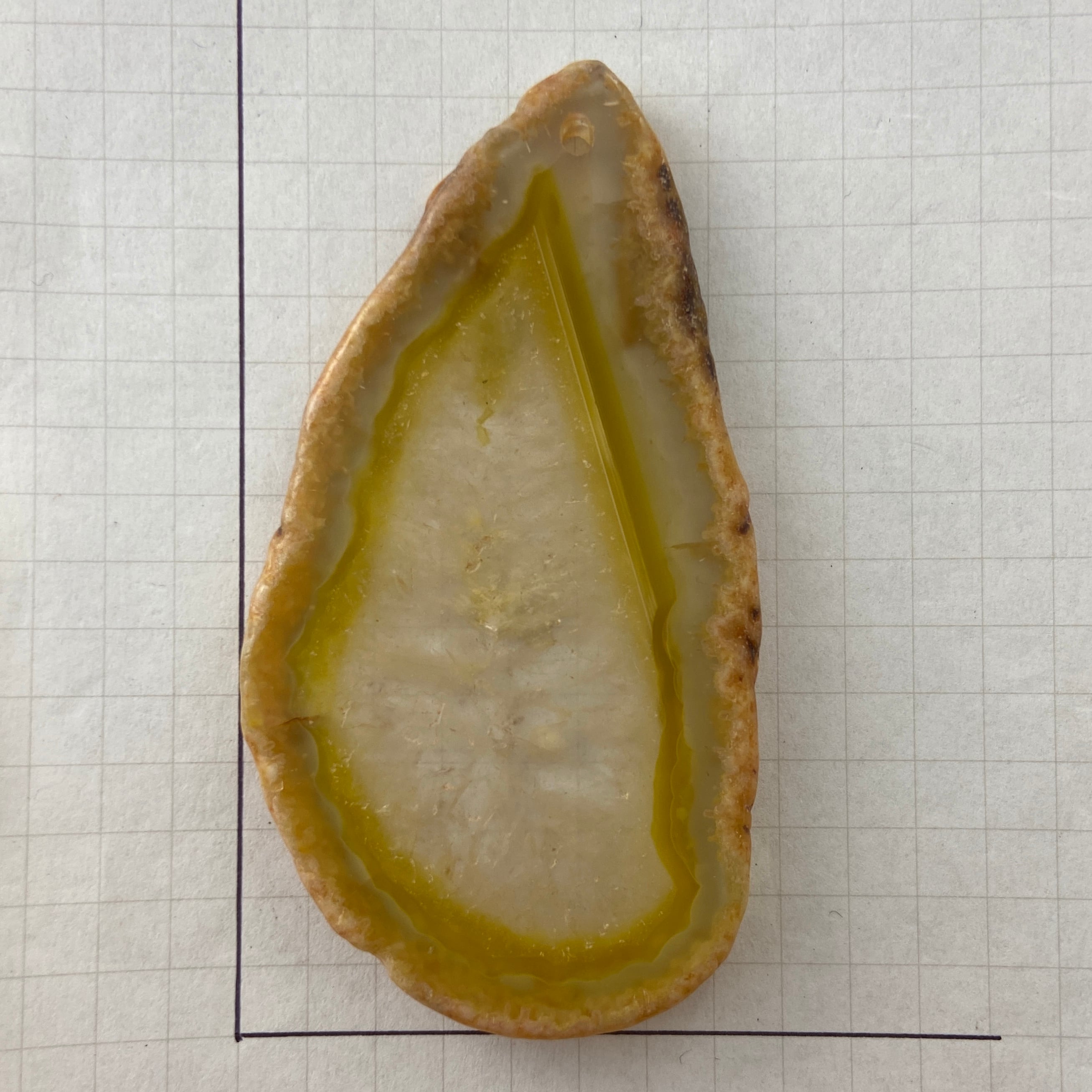 中心から、ドゥルージー部分→アゲート→原石表面部分と成り、年輪の様な模様が個性的で美しいデザインアゲートです。