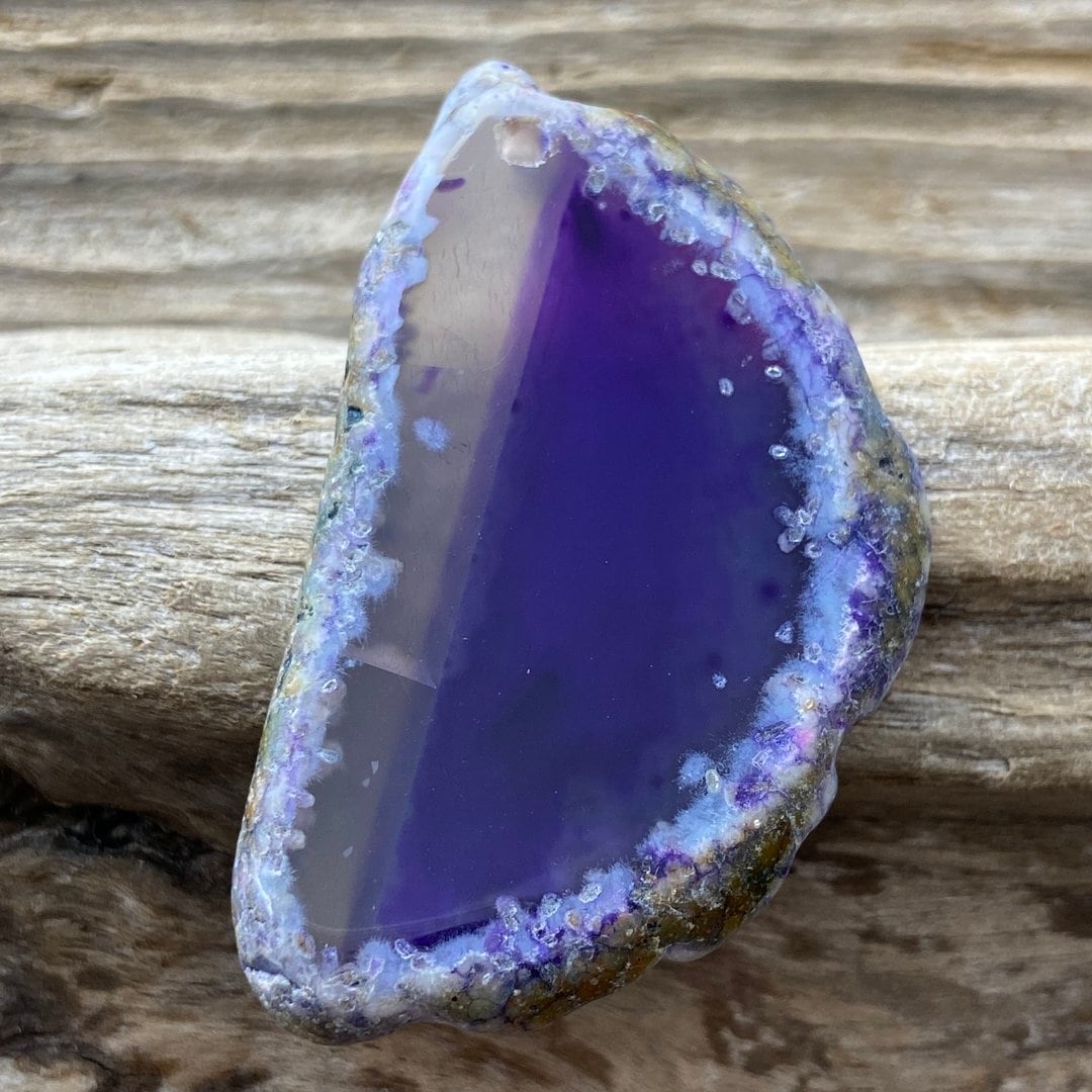 細かい結晶群(ドゥルージー)を含む原石をスライスして、両面が研磨されています。