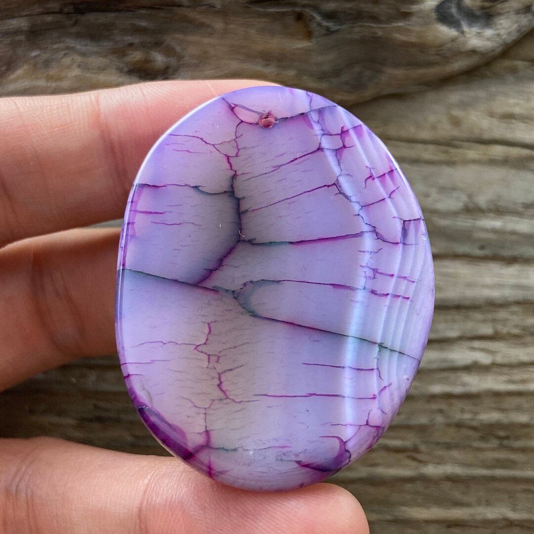 こちらのアゲートの模様は、竜の鱗の様に見えることから『ドラゴンベイン』や『ドラゴンヴェインズ』と呼ばれるクラック加工がされており、カラフルな色味は染色によるものです。
