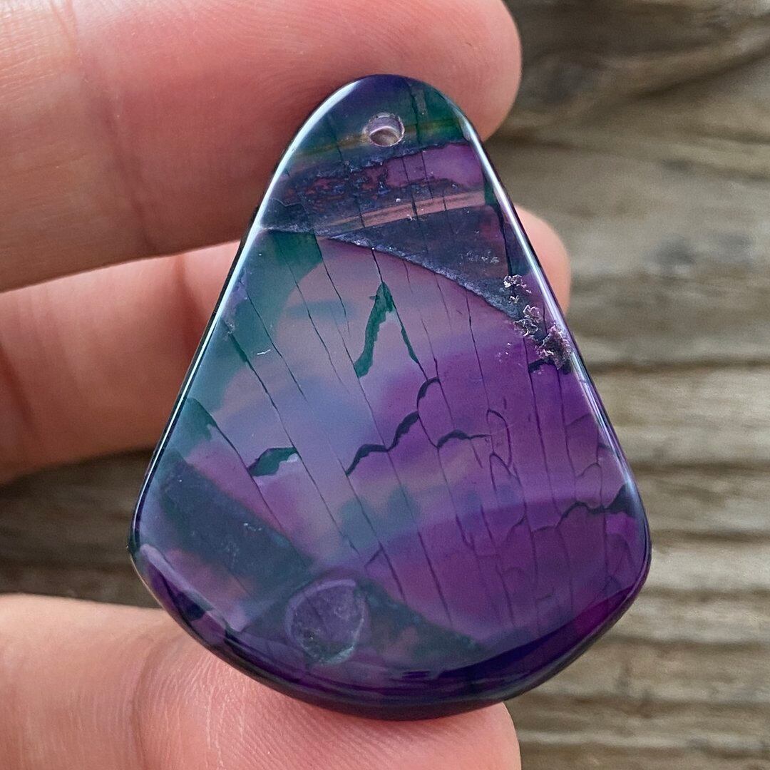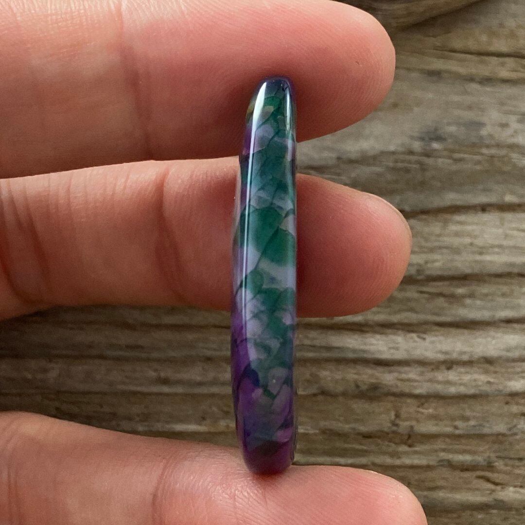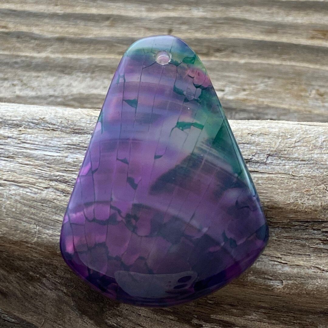 こちらのアゲートの模様は、竜の鱗の様に見えることから『ドラゴンベイン』や『ドラゴンヴェインズ』と呼ばれるクラック加工がされており、カラフルな色味は染色によるものです。
