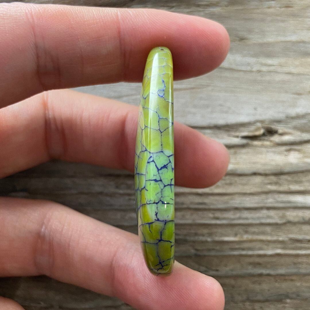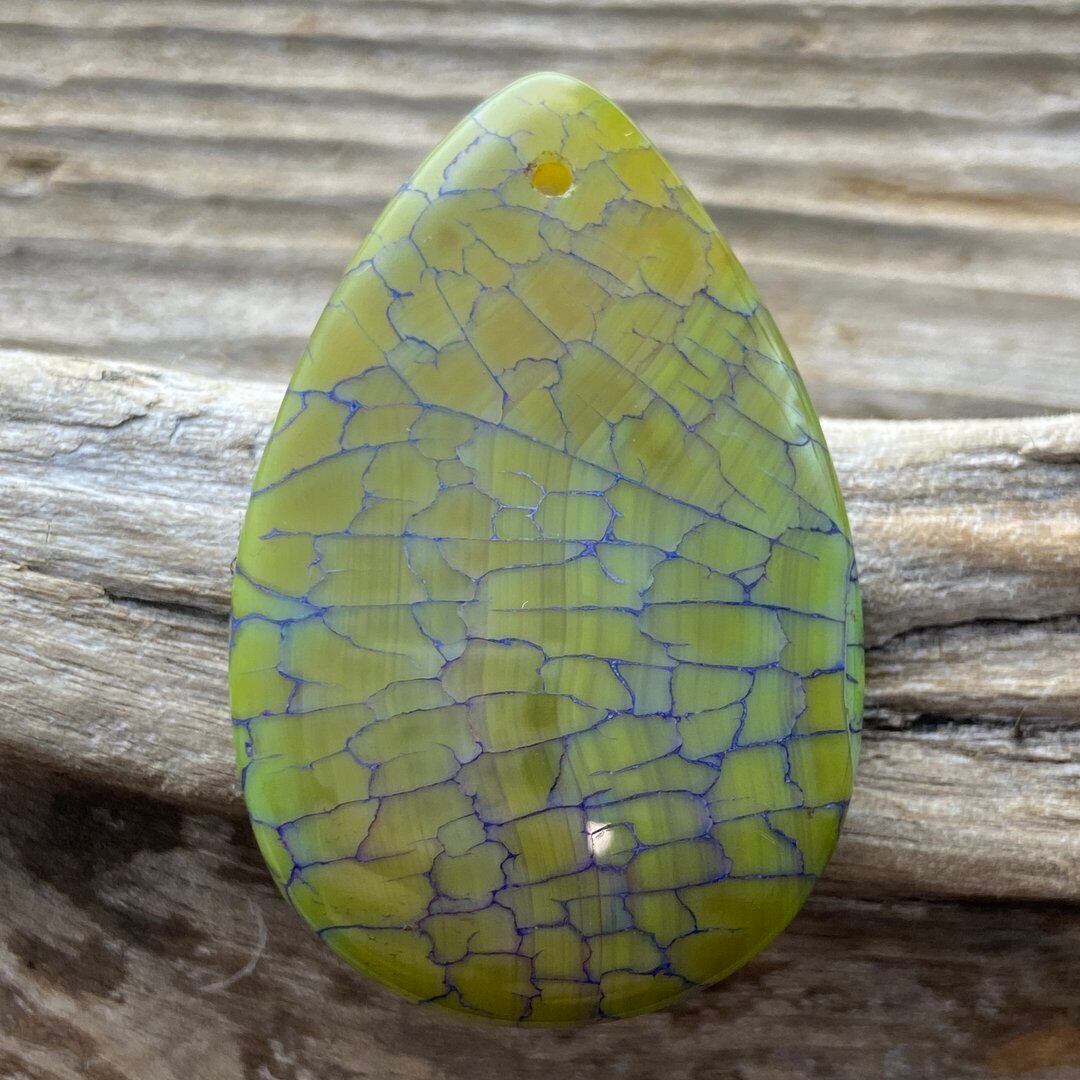 こちらのアゲートの模様は、竜の鱗の様に見えることから『ドラゴンベイン』や『ドラゴンヴェインズ』と呼ばれるクラック加工がされており、カラフルな色味は染色によるものです。