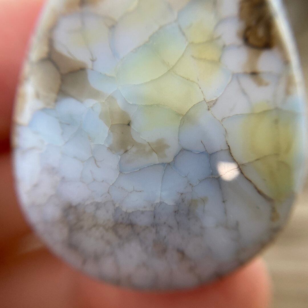 こちらのアゲートの模様は、竜の鱗の様に見えることから『ドラゴンベイン』や『ドラゴンヴェインズ』と呼ばれるクラック加工がされており、カラフルな色味は染色によるものです。