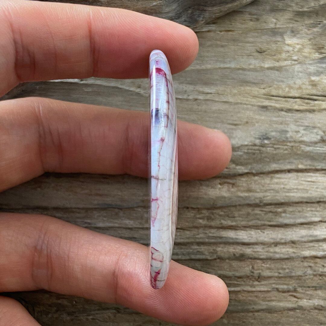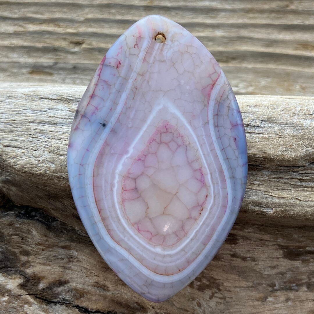 こちらのアゲートの模様は、竜の鱗の様に見えることから『ドラゴンベイン』や『ドラゴンヴェインズ』と呼ばれるクラック加工がされており、カラフルな色味は染色によるものです。