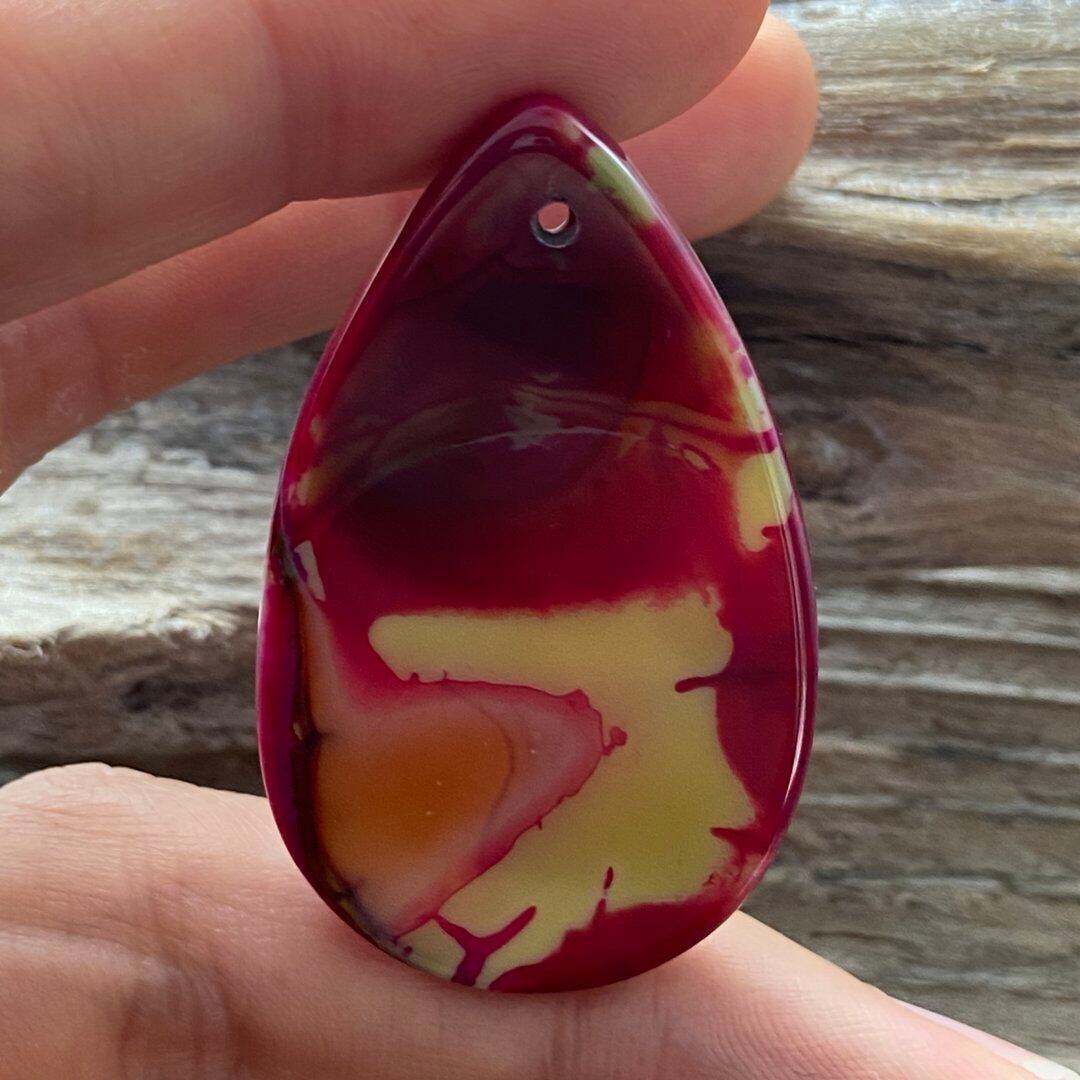 こちらのアゲートの模様は、竜の鱗の様に見えることから『ドラゴンベイン』や『ドラゴンヴェインズ』と呼ばれるクラック加工がされており、カラフルな色味は染色によるものです。