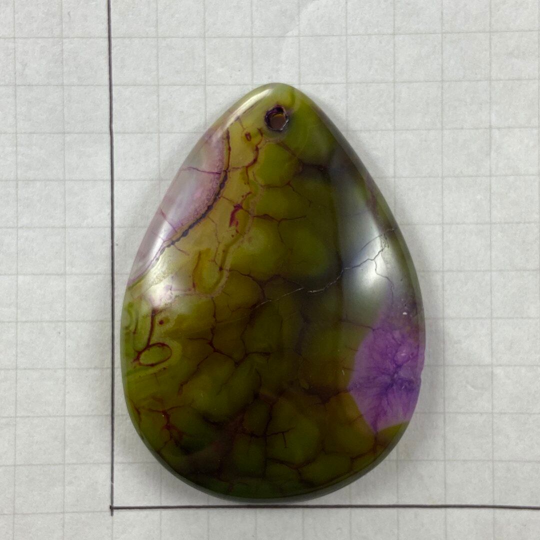 こちらのアゲートの模様は、竜の鱗の様に見えることから『ドラゴンベイン』や『ドラゴンヴェインズ』と呼ばれるクラック加工がされており、カラフルな色味は染色によるものです。