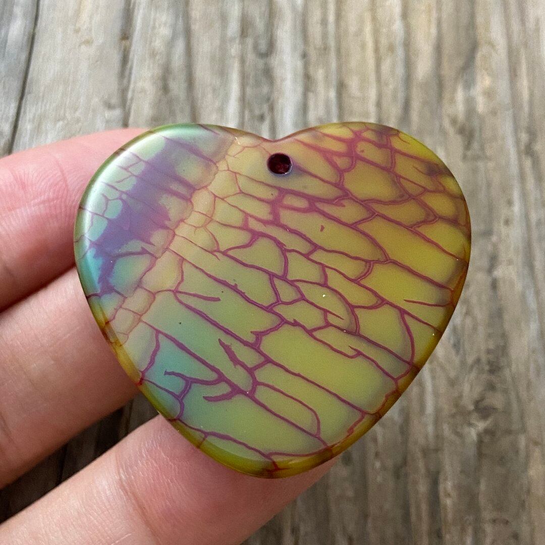 こちらのアゲートの模様は、竜の鱗の様に見えることから『ドラゴンベイン』や『ドラゴンヴェインズ』と呼ばれるクラック加工がされており、カラフルな色味は染色によるものです。