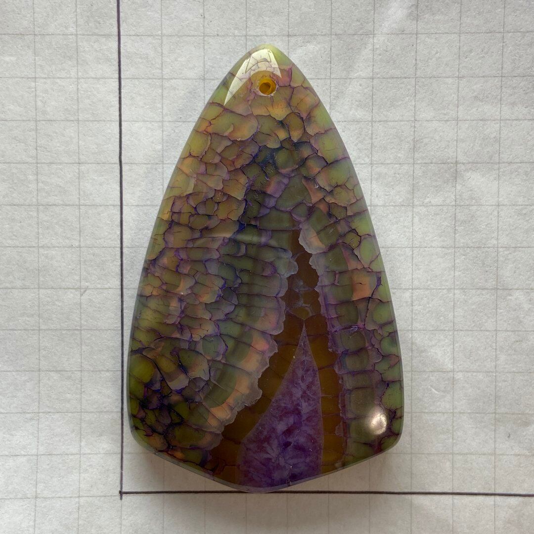 こちらのアゲートの模様は、竜の鱗の様に見えることから『ドラゴンベイン』や『ドラゴンヴェインズ』と呼ばれるクラック加工がされており、カラフルな色味は染色によるものです。