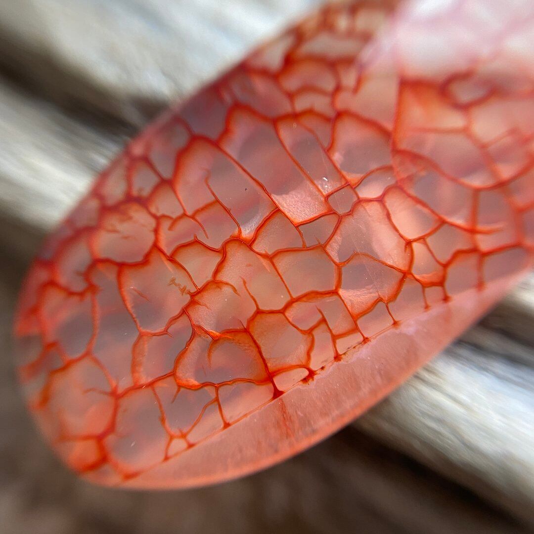 こちらのアゲートの模様は、竜の鱗の様に見えることから『ドラゴンベイン』や『ドラゴンヴェインズ』と呼ばれるクラック加工がされており、カラフルな色味は染色によるものです。