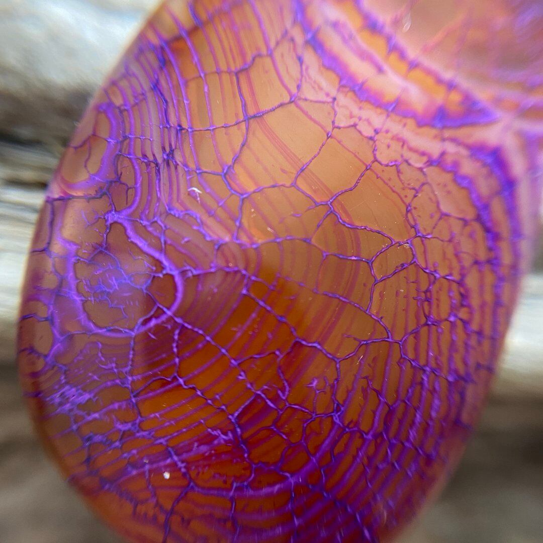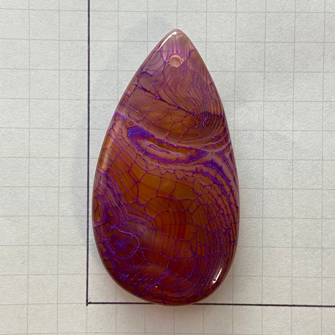 こちらのアゲートの模様は、竜の鱗の様に見えることから『ドラゴンベイン』や『ドラゴンヴェインズ』と呼ばれるクラック加工がされており、カラフルな色味は染色によるものです。
