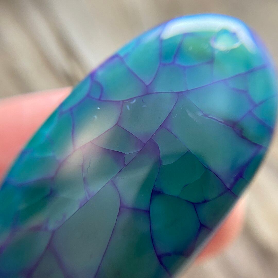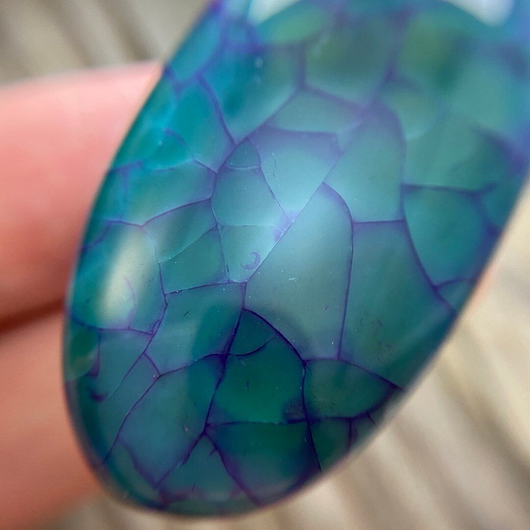こちらのアゲートの模様は、竜の鱗の様に見えることから『ドラゴンベイン』や『ドラゴンヴェインズ』と呼ばれるクラック加工がされており、カラフルな色味は染色によるものです。