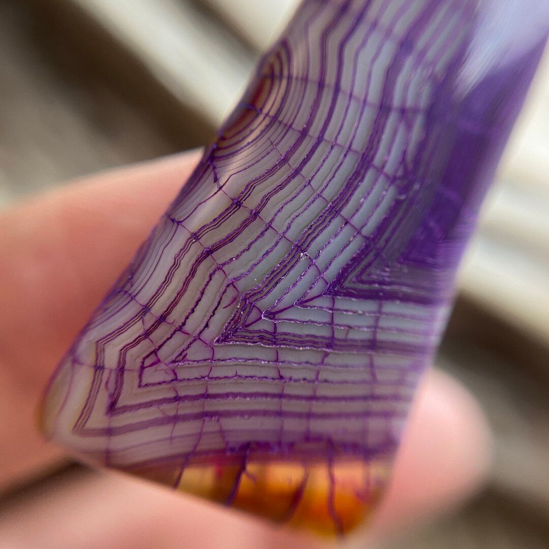 こちらのアゲートの模様は、竜の鱗の様に見えることから『ドラゴンベイン』や『ドラゴンヴェインズ』と呼ばれるクラック加工がされており、カラフルな色味は染色によるものです。
