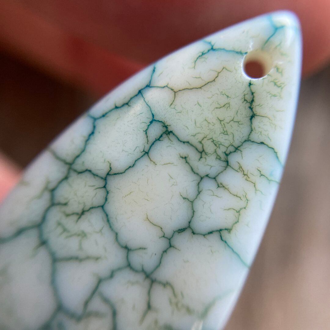 こちらのアゲートの模様は、竜の鱗の様に見えることから『ドラゴンベイン』や『ドラゴンヴェインズ』と呼ばれるクラック加工がされており、カラフルな色味は染色によるものです。