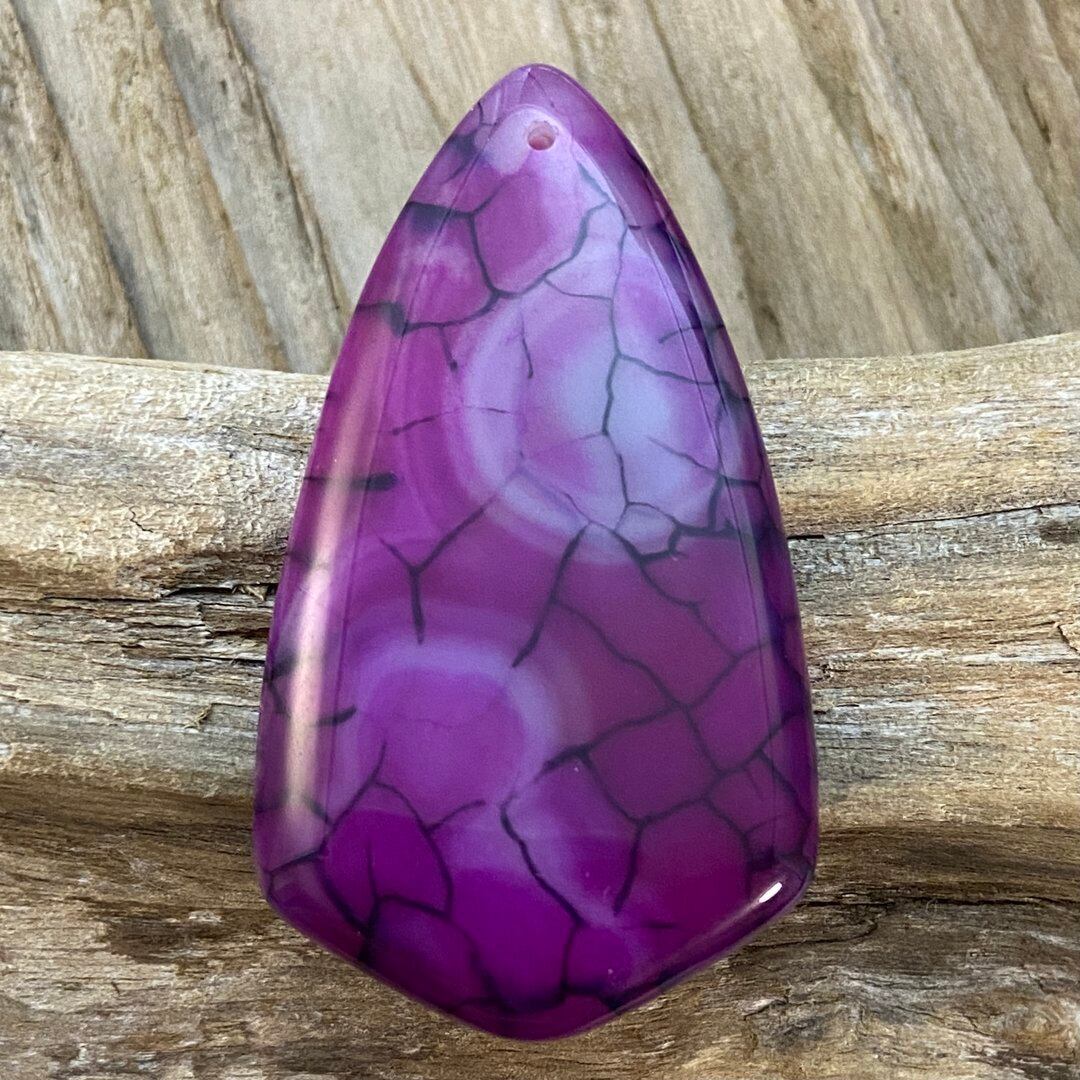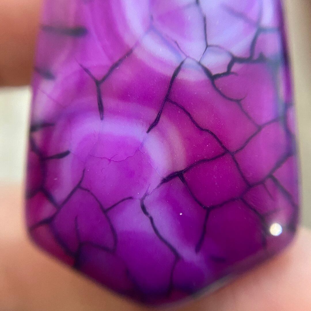 こちらのアゲートの模様は、竜の鱗の様に見えることから『ドラゴンベイン』や『ドラゴンヴェインズ』と呼ばれるクラック加工がされており、カラフルな色味は染色によるものです。