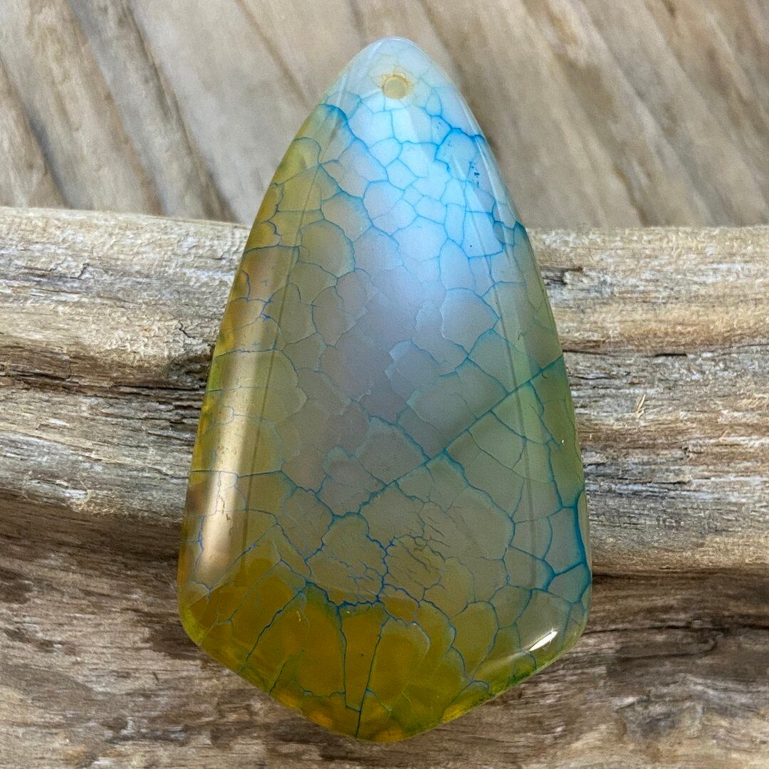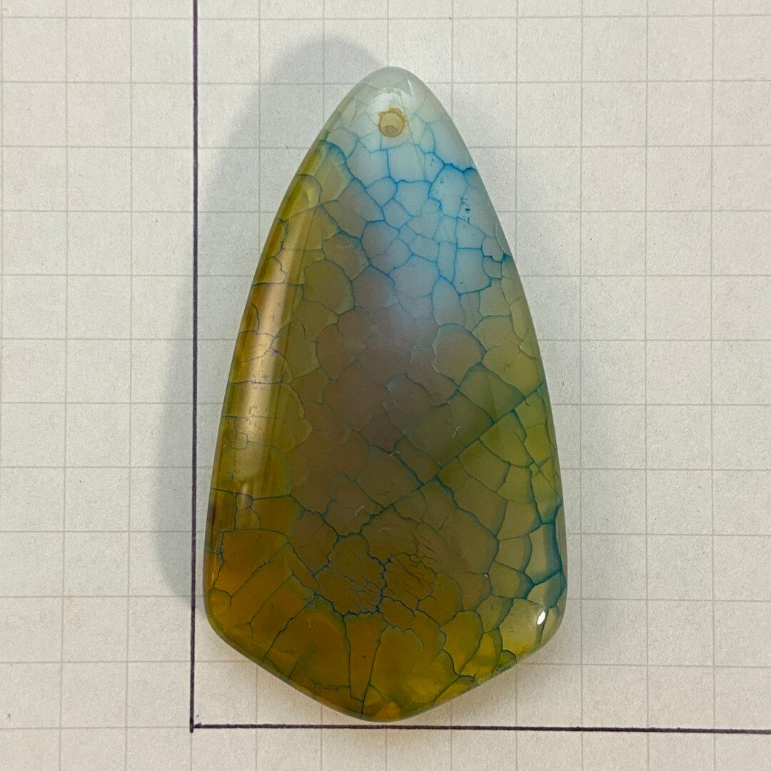 こちらのアゲートの模様は、竜の鱗の様に見えることから『ドラゴンベイン』や『ドラゴンヴェインズ』と呼ばれるクラック加工がされており、カラフルな色味は染色によるものです。