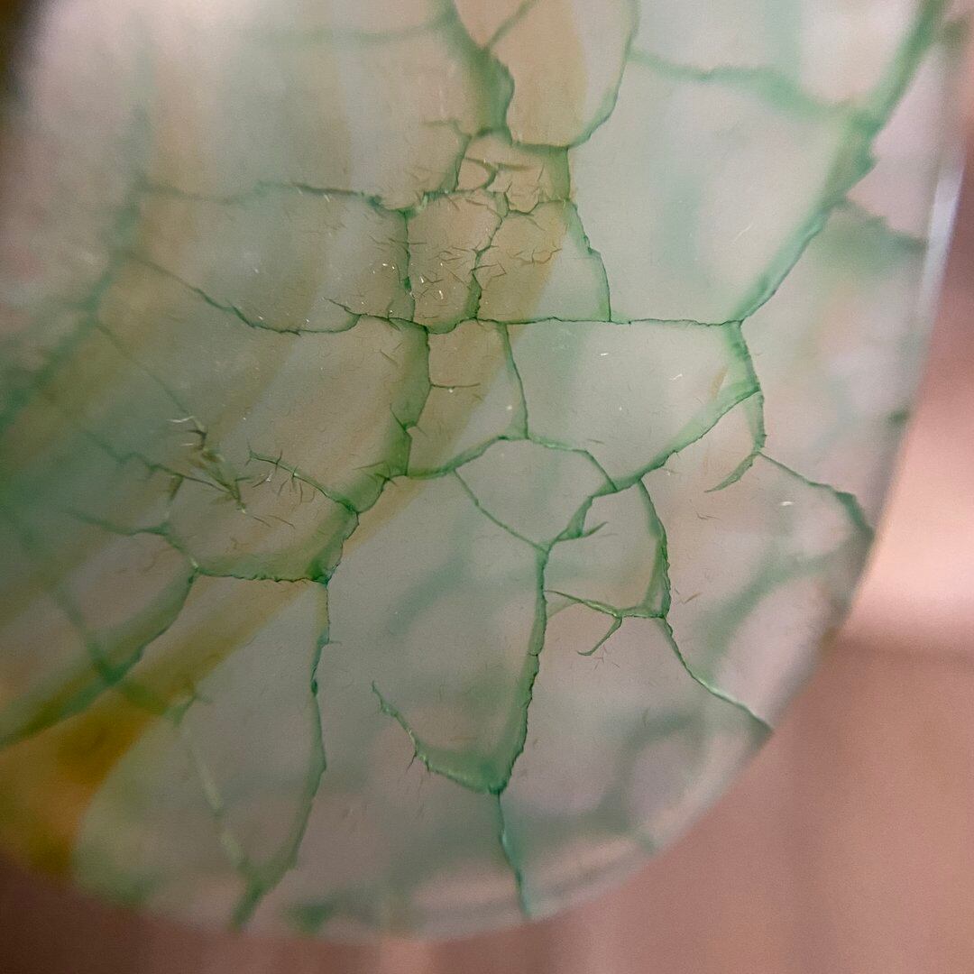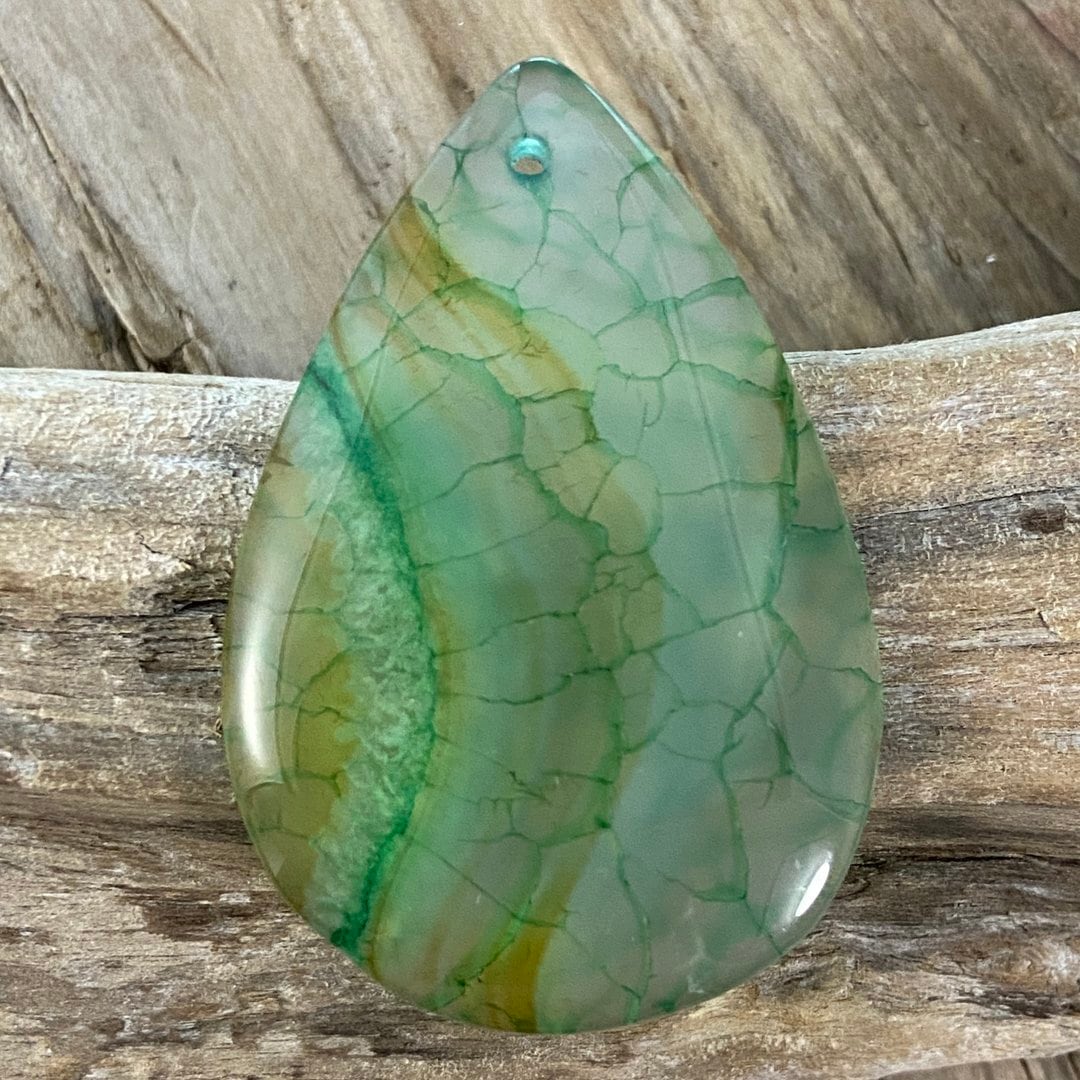 こちらのアゲートの模様は、竜の鱗の様に見えることから『ドラゴンベイン』や『ドラゴンヴェインズ』と呼ばれるクラック加工がされており、カラフルな色味は染色によるものです。