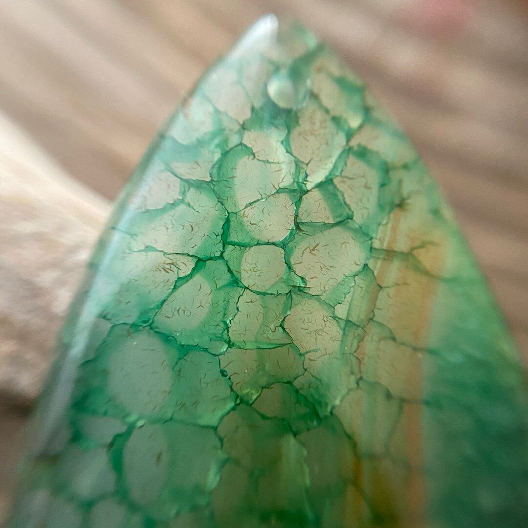 こちらのアゲートの模様は、竜の鱗の様に見えることから『ドラゴンベイン』や『ドラゴンヴェインズ』と呼ばれるクラック加工がされており、カラフルな色味は染色によるものです。