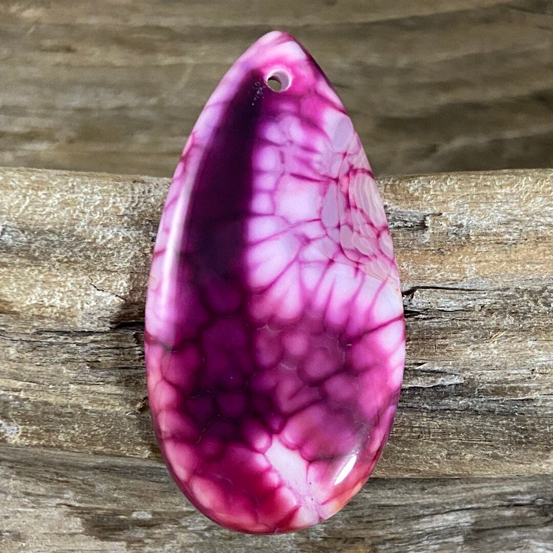 こちらのアゲートの模様は、竜の鱗の様に見えることから『ドラゴンベイン』や『ドラゴンヴェインズ』と呼ばれるクラック加工がされており、カラフルな色味は染色によるものです。