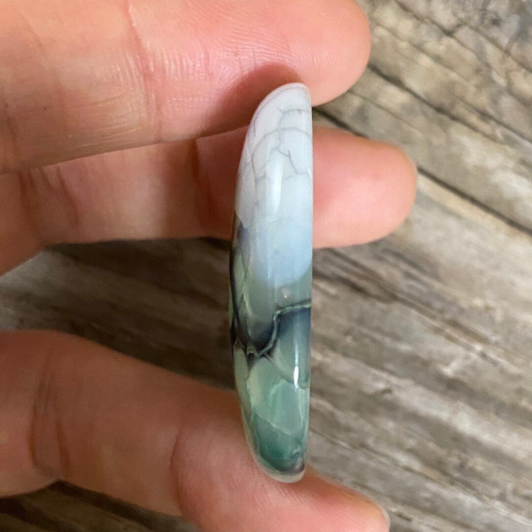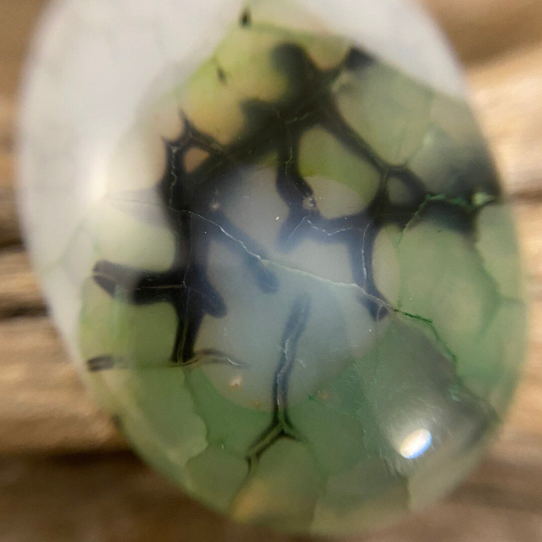 こちらのアゲートの模様は、竜の鱗の様に見えることから『ドラゴンベイン』や『ドラゴンヴェインズ』と呼ばれるクラック加工がされており、カラフルな色味は染色によるものです。