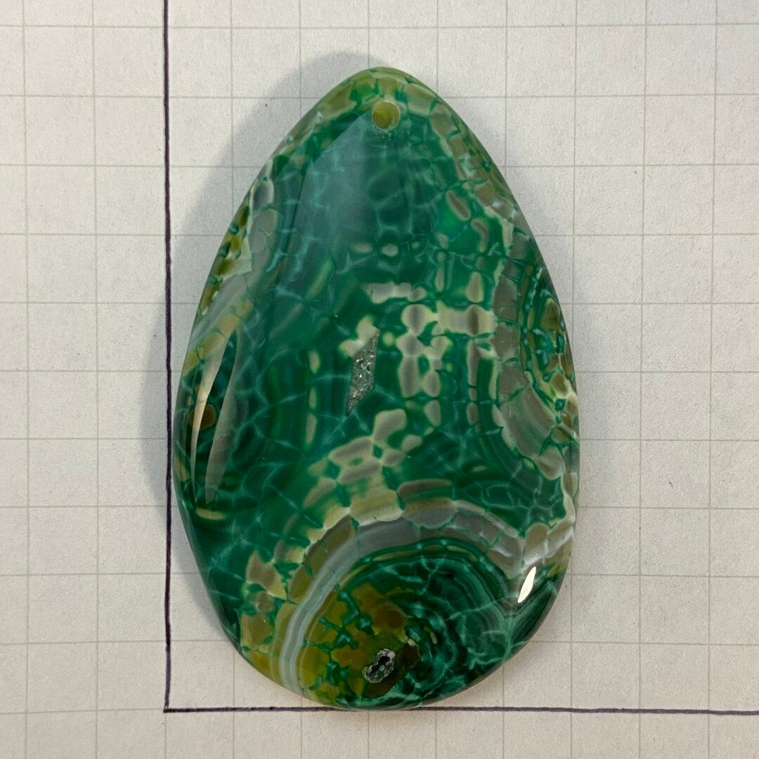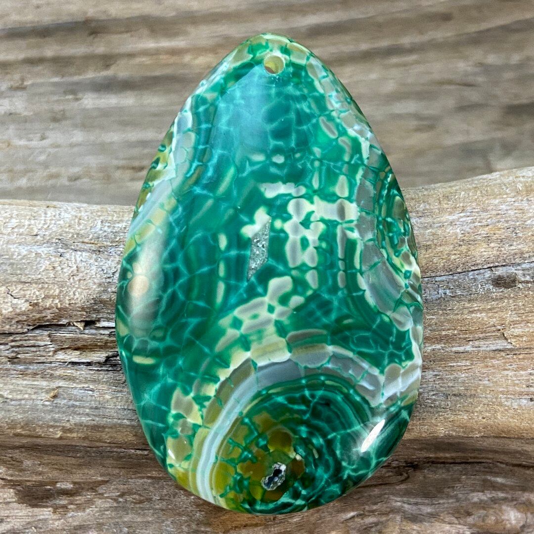 こちらのアゲートの模様は、竜の鱗の様に見えることから『ドラゴンベイン』や『ドラゴンヴェインズ』と呼ばれるクラック加工がされており、カラフルな色味は染色によるものです。