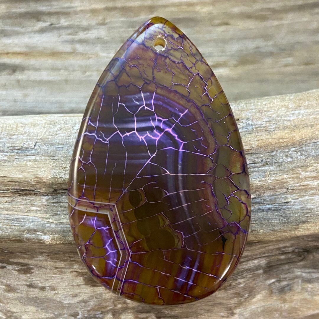 こちらのアゲートの模様は、竜の鱗の様に見えることから『ドラゴンベイン』や『ドラゴンヴェインズ』と呼ばれるクラック加工がされており、カラフルな色味は染色によるものです。