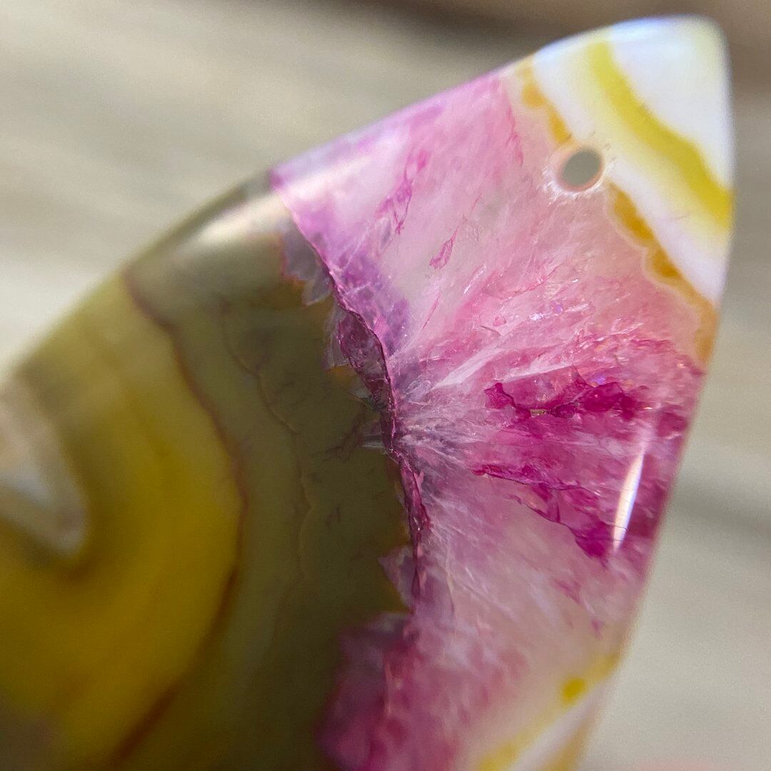 こちらのアゲートのカラフルな色味は染色によるものです。