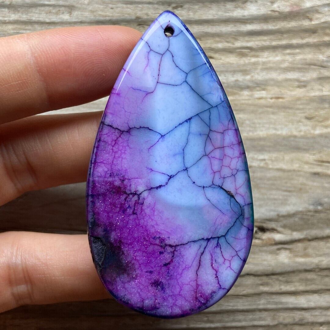 こちらのアゲートの模様は、竜の鱗の様に見えることから『ドラゴンベイン』や『ドラゴンヴェインズ』と呼ばれるクラック加工がされており、カラフルな色味は染色によるものです。