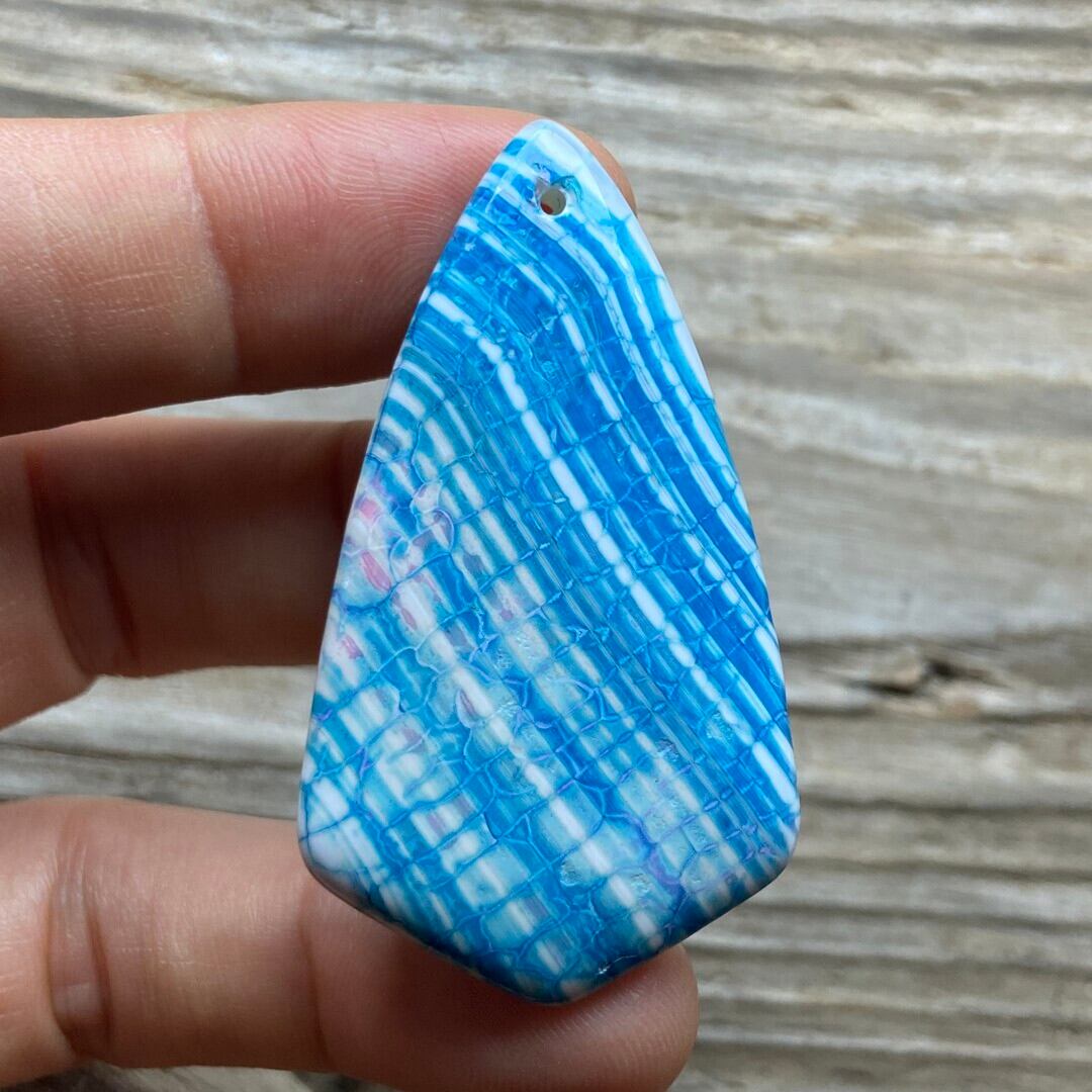 こちらのアゲートの模様は、竜の鱗の様に見えることから『ドラゴンベイン』や『ドラゴンヴェインズ』と呼ばれるクラック加工がされており、カラフルな色味は染色によるものです。