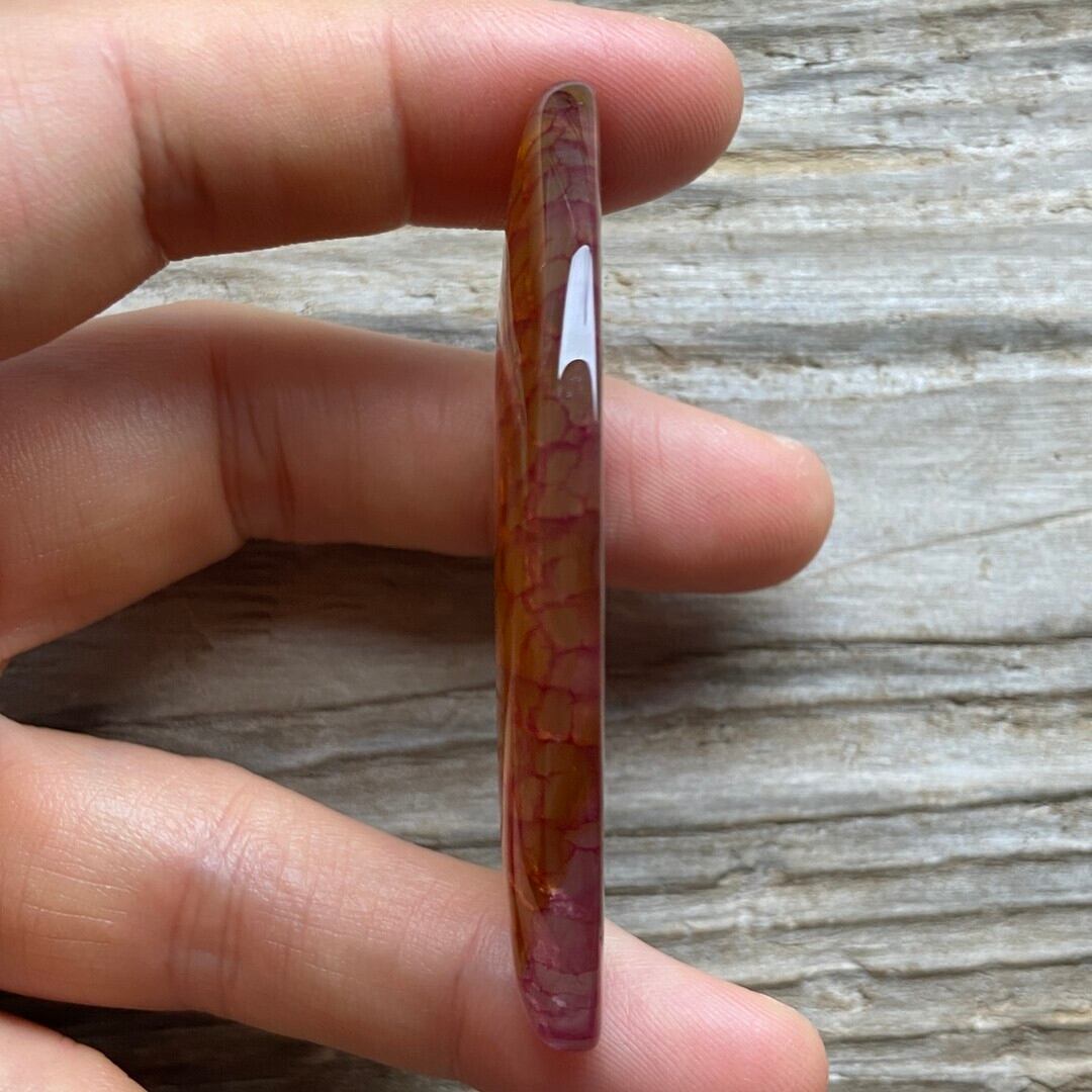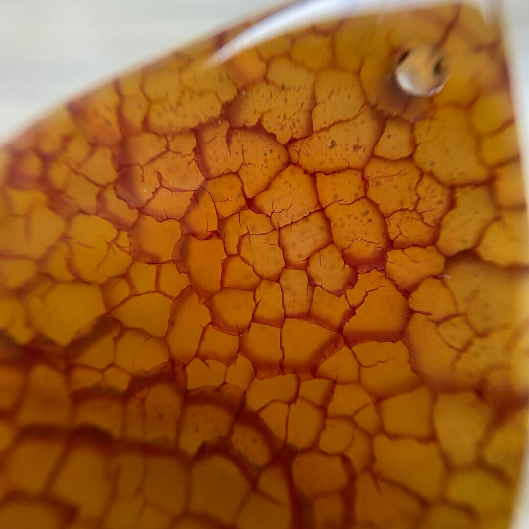 こちらのアゲートの模様は、竜の鱗の様に見えることから『ドラゴンベイン』や『ドラゴンヴェインズ』と呼ばれるクラック加工がされており、カラフルな色味は染色によるものです。