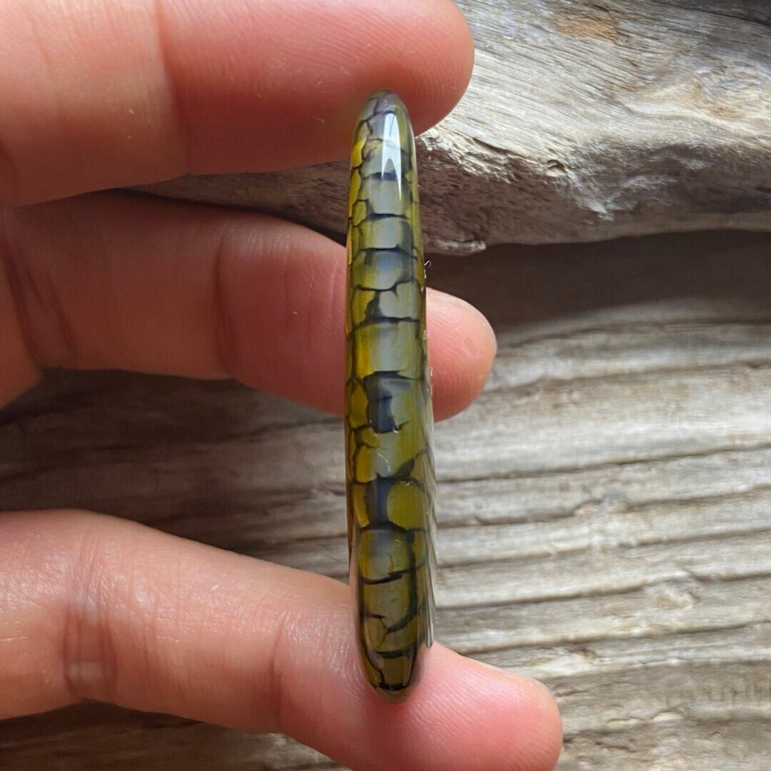 こちらのアゲートの模様は、竜の鱗の様に見えることから『ドラゴンベイン』や『ドラゴンヴェインズ』と呼ばれるクラック加工がされており、カラフルな色味は染色によるものです。