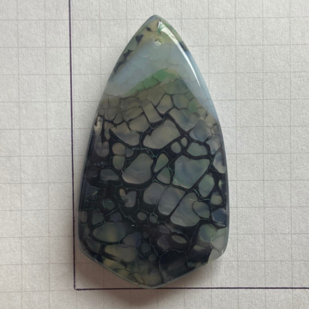こちらのアゲートの模様は、竜の鱗の様に見えることから『ドラゴンベイン』や『ドラゴンヴェインズ』と呼ばれるクラック加工がされており、カラフルな色味は染色によるものです。