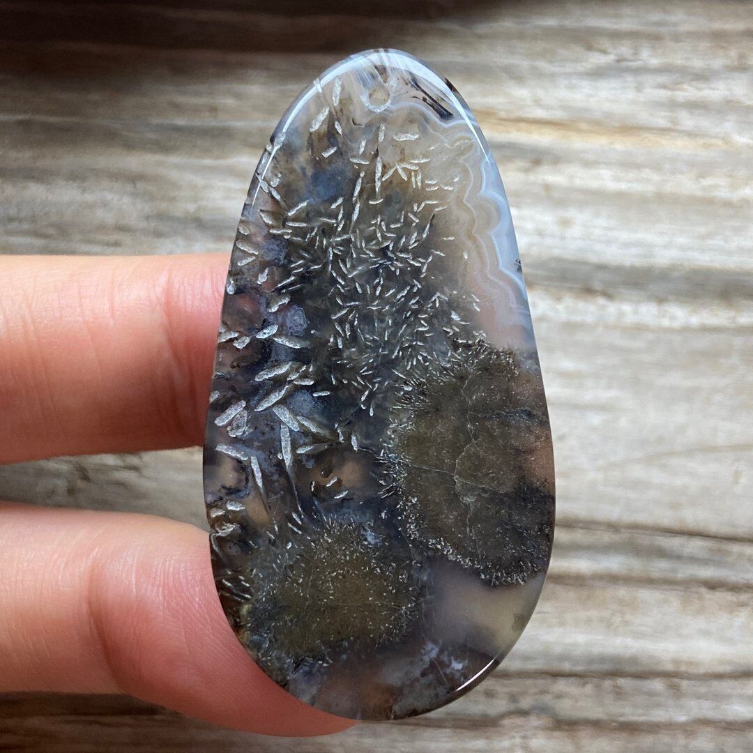 特にこちらは、デンドライトと呼ばれるシダ状や樹枝状のインクルージョンを内包している、とてもめずらしいデザインのアゲートです。