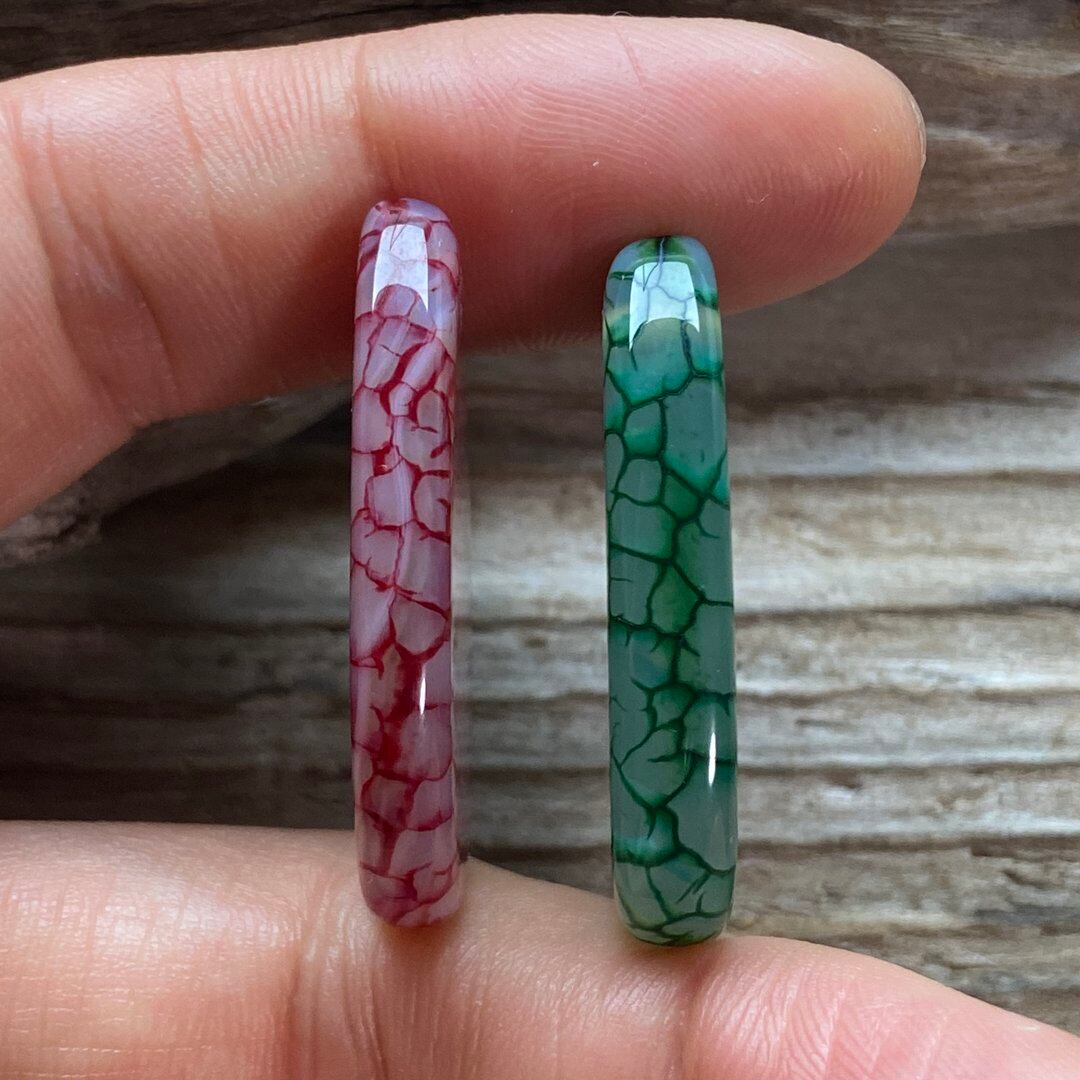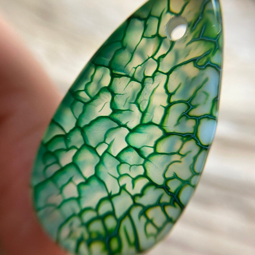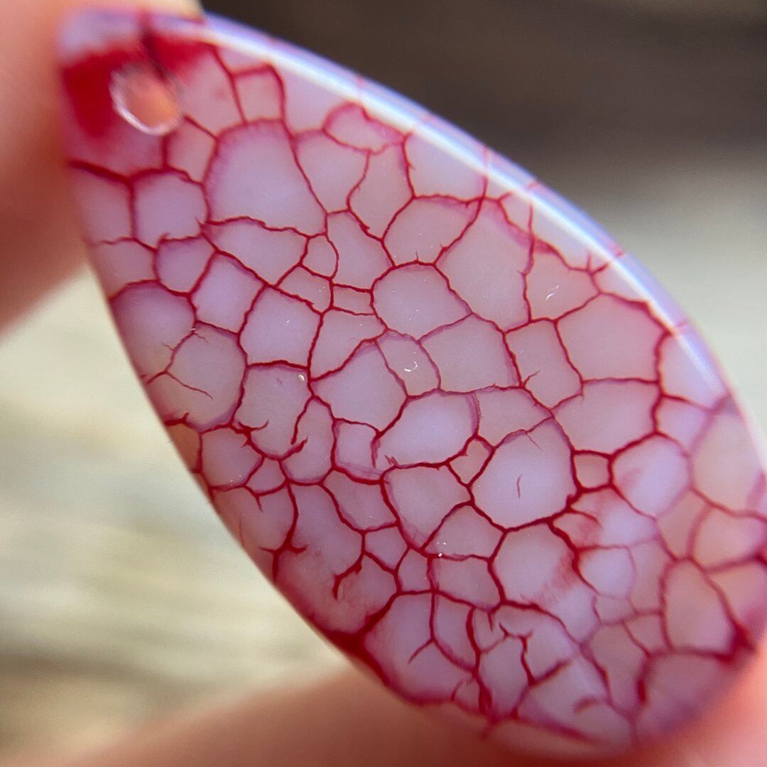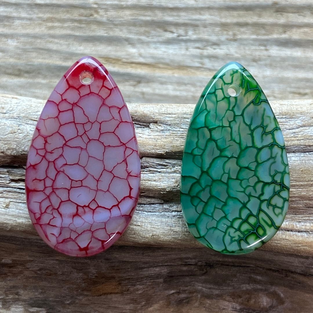 こちらのアゲートの模様は、竜の鱗の様に見えることから『ドラゴンベイン』や『ドラゴンヴェインズ』と呼ばれるクラック加工がされており、カラフルな色味は染色によるものです。