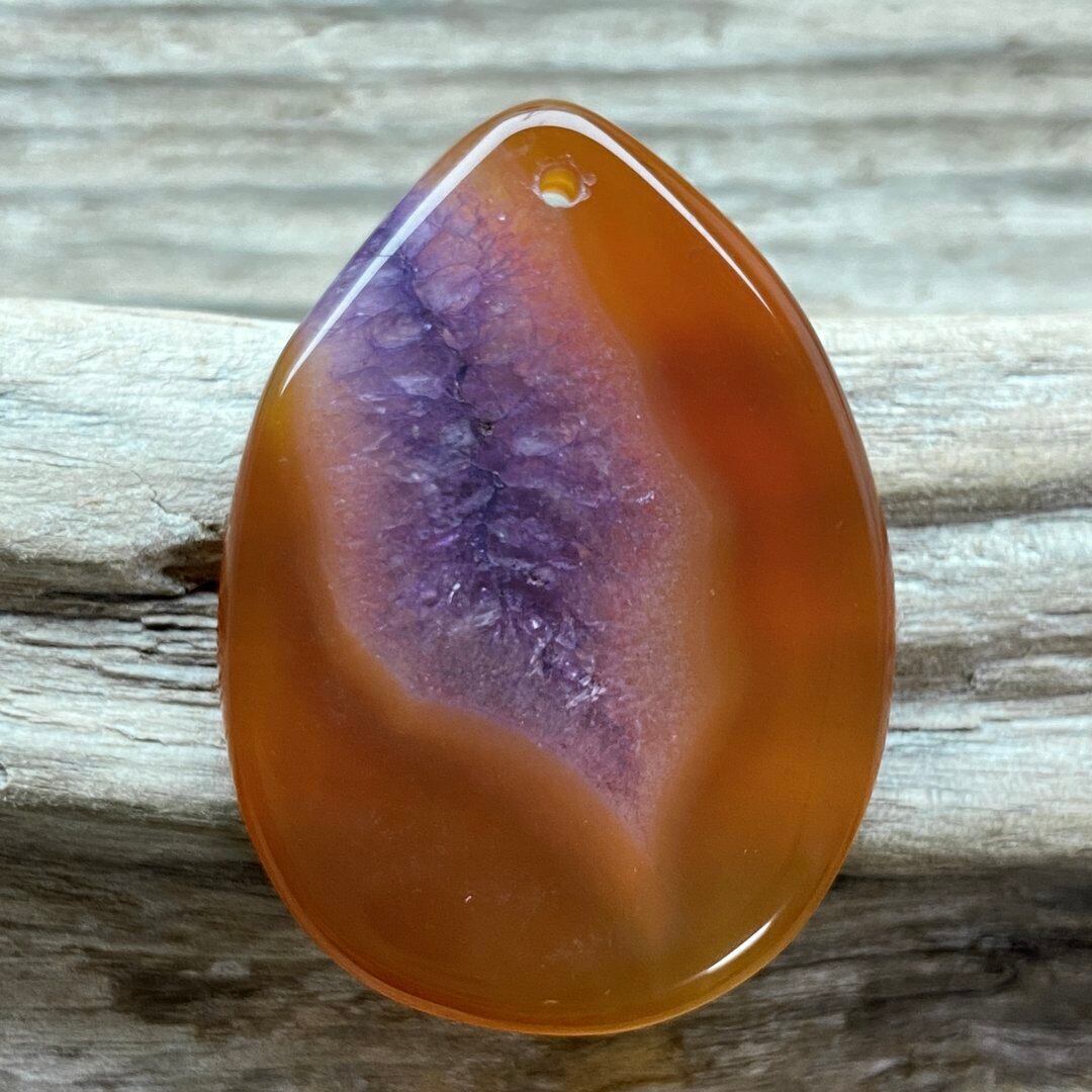 細かい結晶群(ドゥルージー)をバランスよく残してカット・研磨され、天然石の模様を生かした美しいデザインのアゲートです。