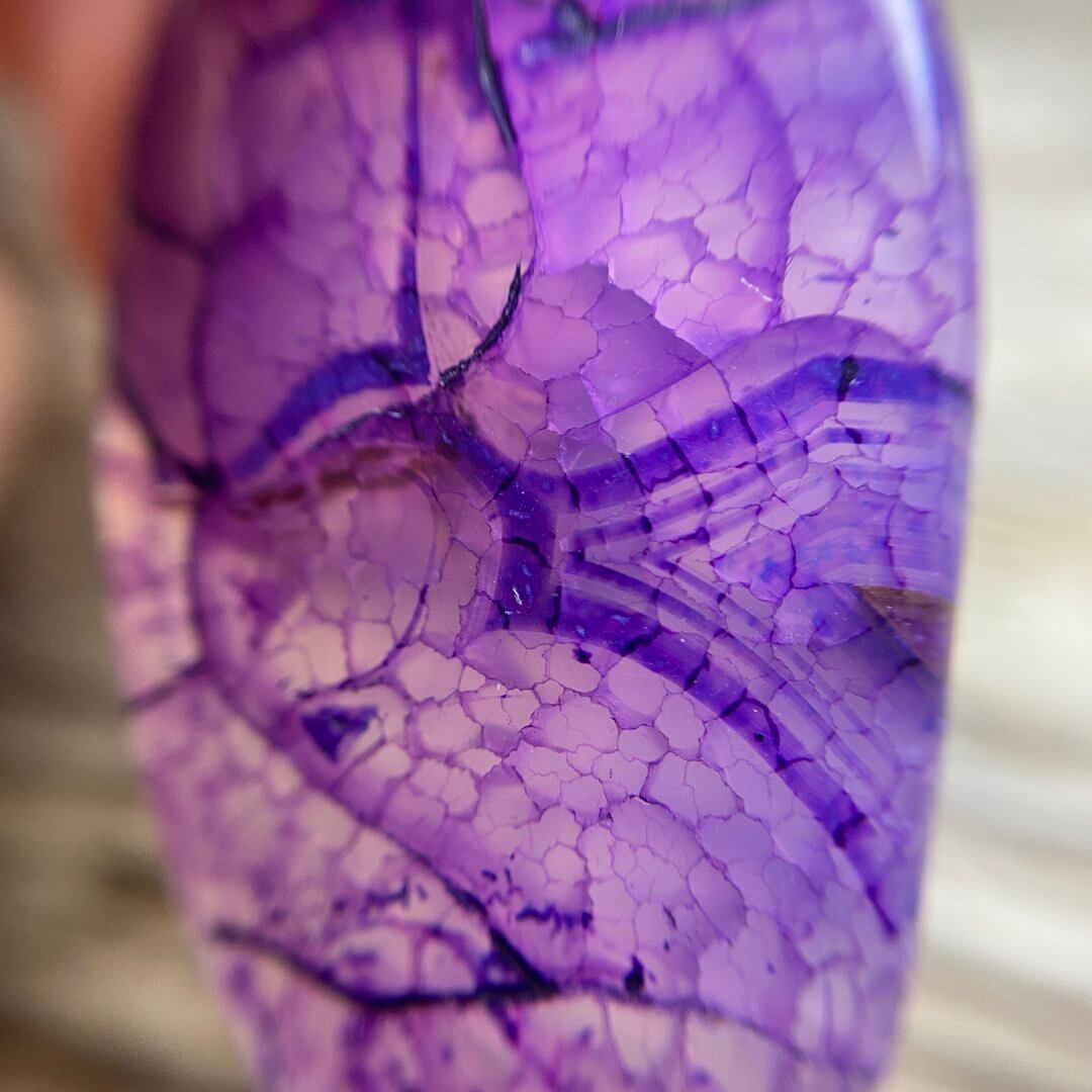 こちらのアゲートの模様は、竜の鱗の様に見えることから『ドラゴンベイン』や『ドラゴンヴェインズ』と呼ばれるクラック加工がされており、カラフルな色味は染色によるものです。