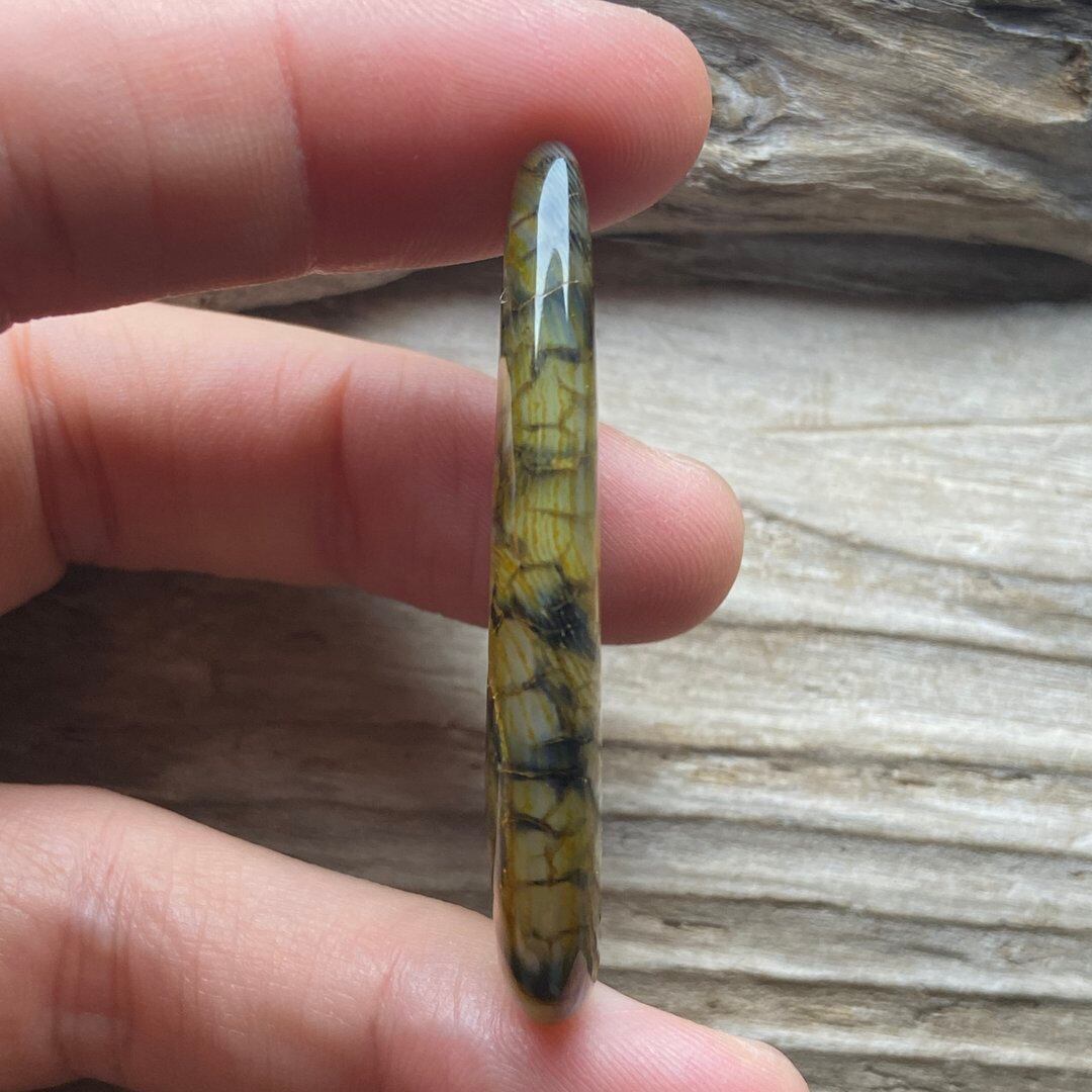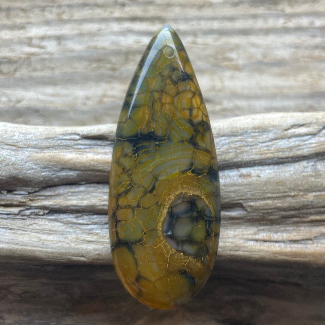 こちらのアゲートの模様は、竜の鱗の様に見えることから『ドラゴンベイン』や『ドラゴンヴェインズ』と呼ばれるクラック加工がされており、カラフルな色味は染色によるものです。
