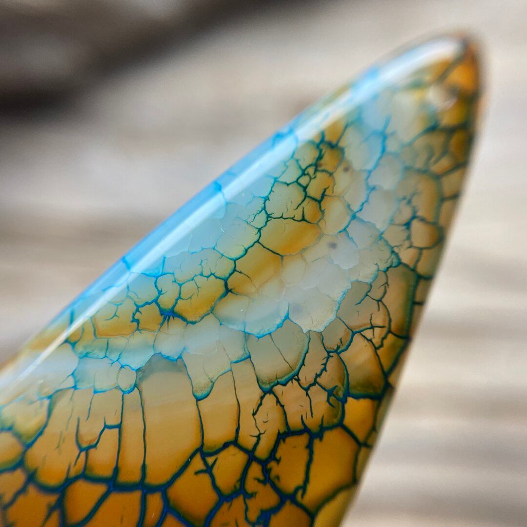 細かい結晶群(ドゥルージー)をバランスよく残してカット・研磨され、天然石の模様を生かした美しいデザインのアゲートです。