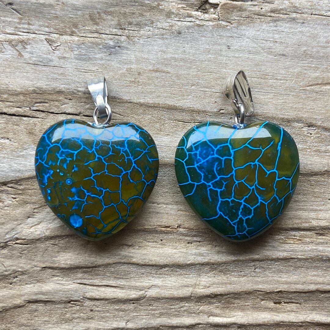 こちらのアゲートの模様は、竜の鱗の様に見えることから『ドラゴンベイン』や『ドラゴンヴェインズ』と呼ばれるクラック加工がされており、カラフルな色味は染色によるものです。