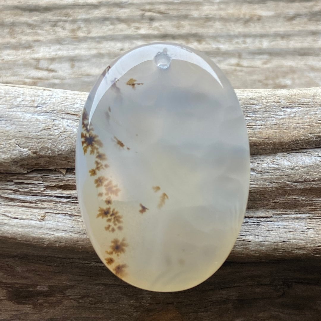 ペンダントなどに使いやすい、穴あきのデンドリティックアゲートです。