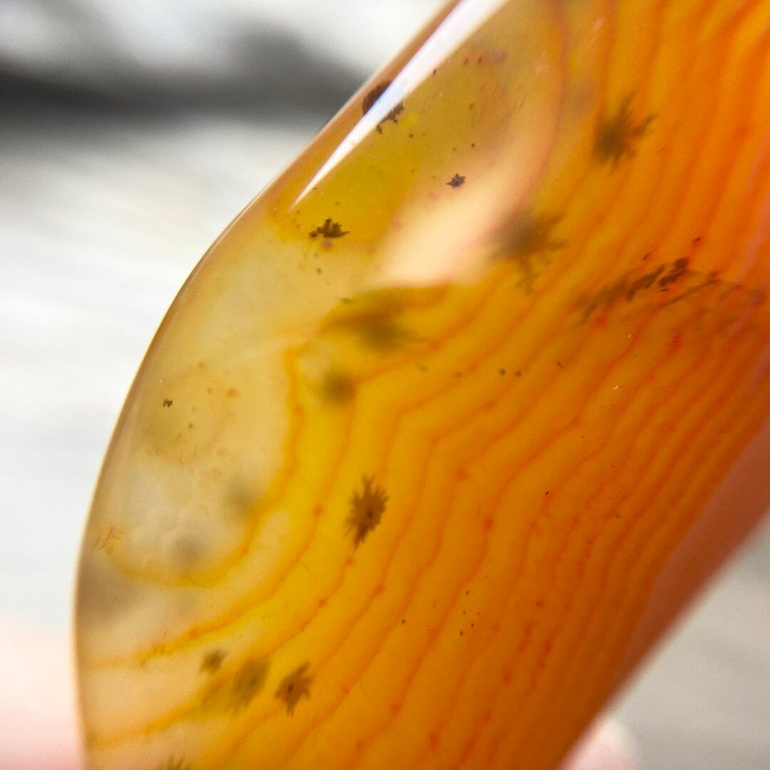 特にこちらは、デンドライトと呼ばれるシダ状や樹枝状のインクルージョンを内包している、とてもめずらしいデザインのアゲートです。