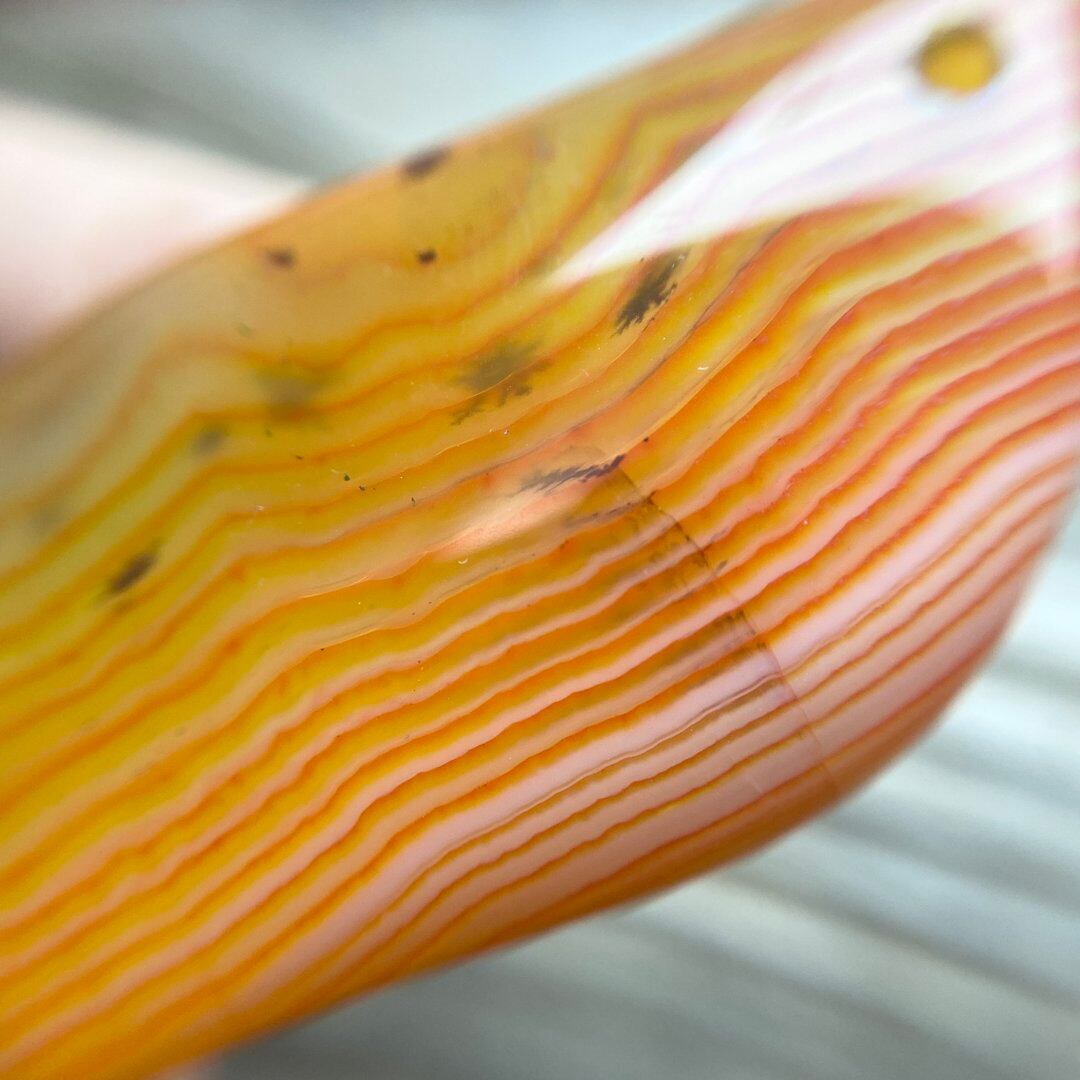 天然アゲートならではの、美しい曲線を描くライン、ストライプ模様などを生かしたデザインは多彩で、同じ模様の石はありません。