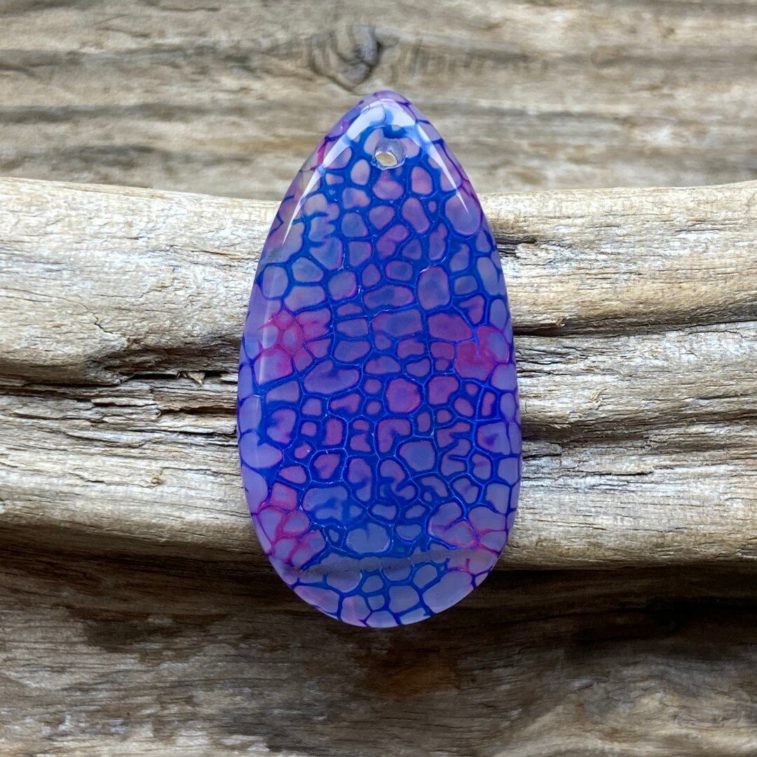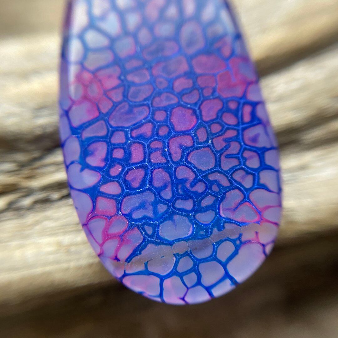 こちらのアゲートの模様は、竜の鱗の様に見えることから『ドラゴンベイン』や『ドラゴンヴェインズ』と呼ばれるクラック加工がされており、カラフルな色味は染色によるものです。