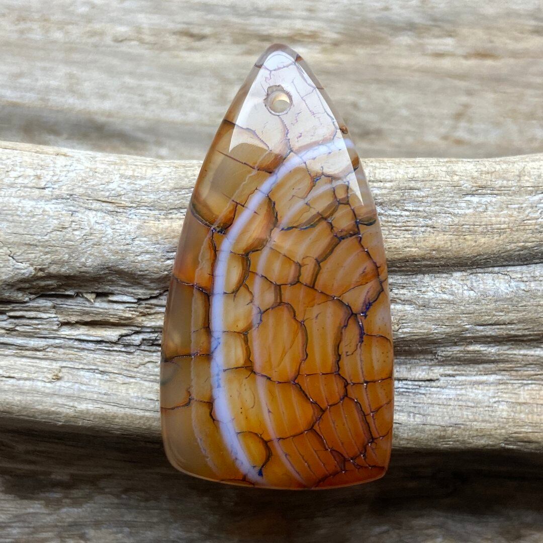 こちらのアゲートの模様は、竜の鱗の様に見えることから『ドラゴンベイン』や『ドラゴンヴェインズ』と呼ばれるクラック加工がされており、カラフルな色味は染色によるものです。