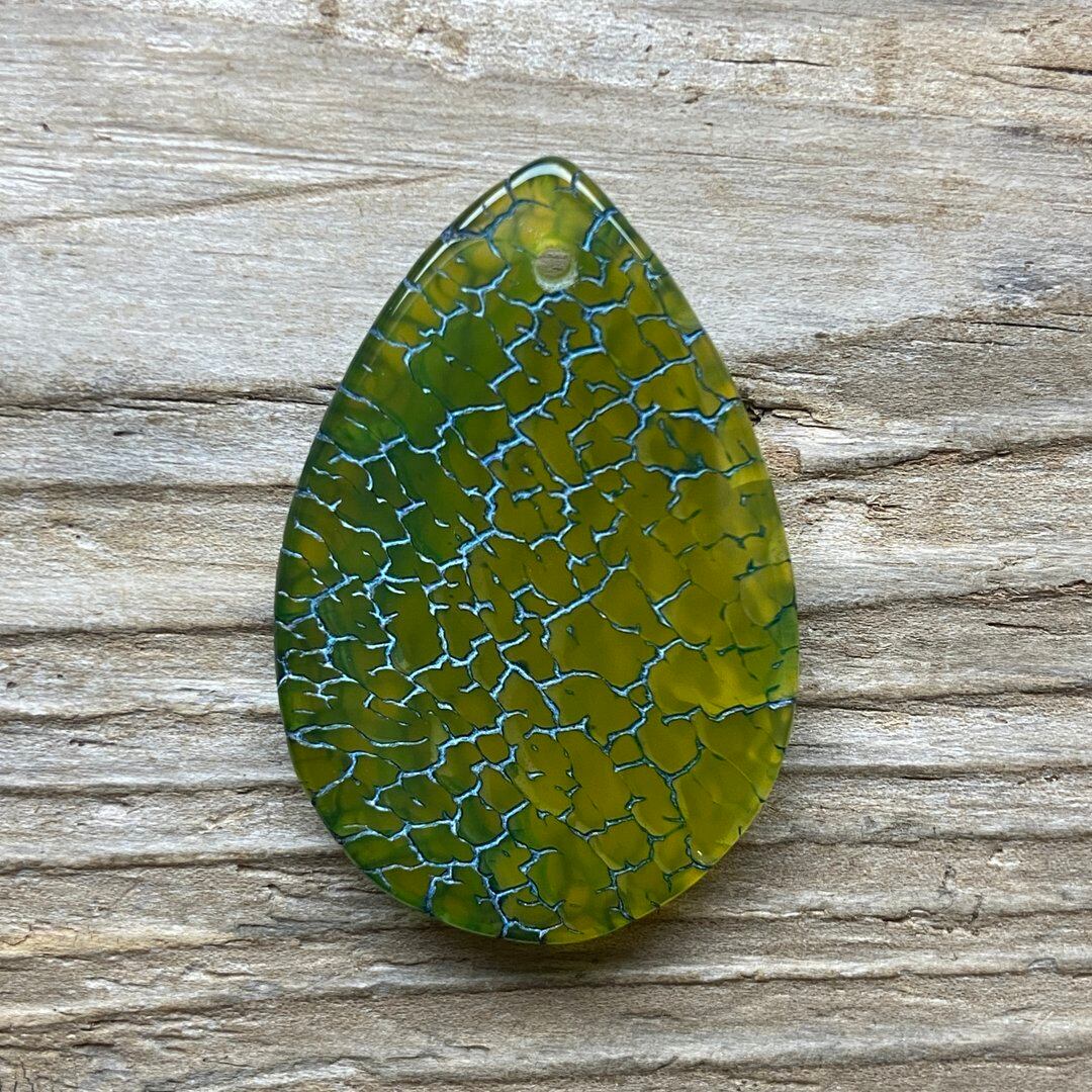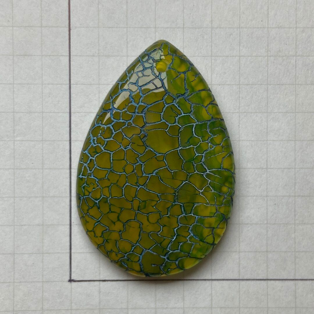 こちらのアゲートの模様は、竜の鱗の様に見えることから『ドラゴンベイン』や『ドラゴンヴェインズ』と呼ばれるクラック加工がされており、カラフルな色味は染色によるものです。