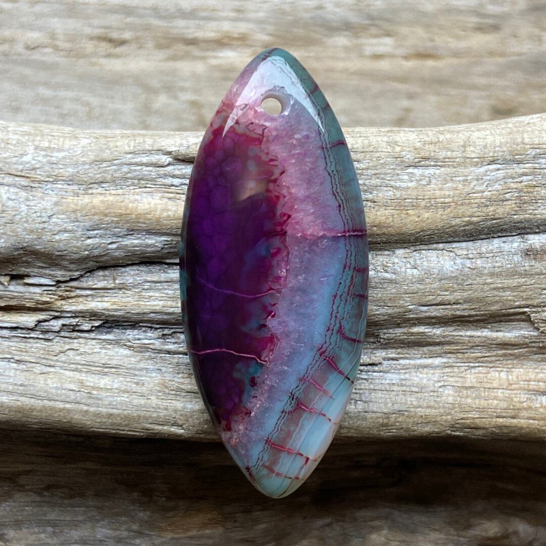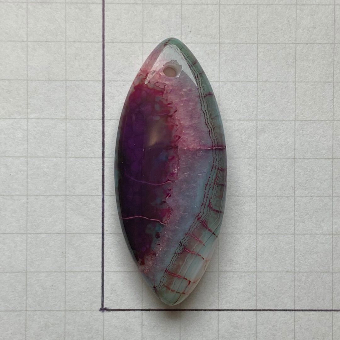 こちらのアゲートの模様は、竜の鱗の様に見えることから『ドラゴンベイン』や『ドラゴンヴェインズ』と呼ばれるクラック加工がされており、カラフルな色味は染色によるものです。