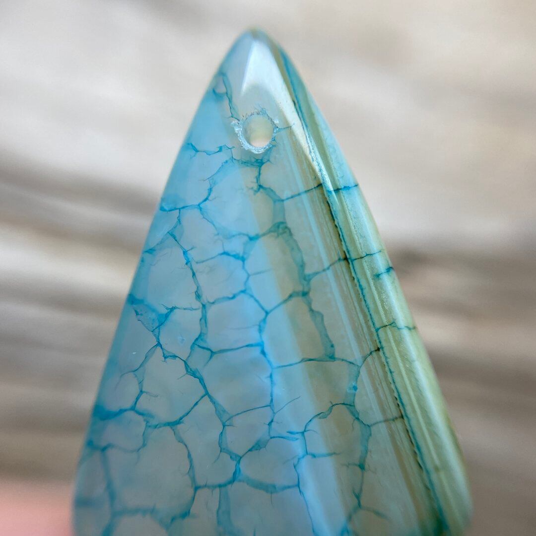 こちらのアゲートの模様は、竜の鱗の様に見えることから『ドラゴンベイン』や『ドラゴンヴェインズ』と呼ばれるクラック加工がされており、カラフルな色味は染色によるものです。