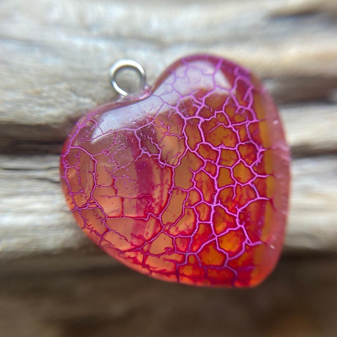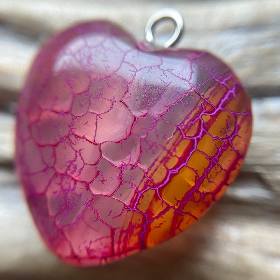 こちらのアゲートの模様は、竜の鱗の様に見えることから『ドラゴンベイン』や『ドラゴンヴェインズ』と呼ばれるクラック加工がされており、カラフルな色味は染色によるものです。