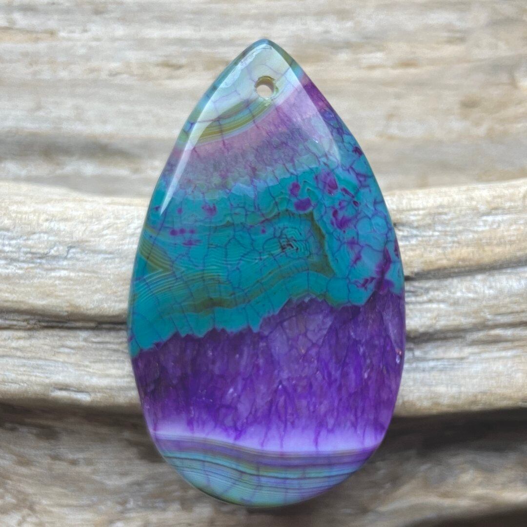 こちらのアゲートの模様は、竜の鱗の様に見えることから『ドラゴンベイン』や『ドラゴンヴェインズ』と呼ばれるクラック加工がされており、カラフルな色味は染色によるものです。